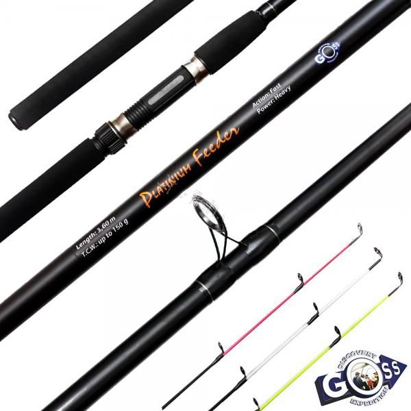 Все удилища серии Goss Platinium Feeder имеют трехсекционное исполнение и относятся фидерам тяжелого класса. Бланки изготовлены из высококачественного углеволокна (карбона) и имеют жесткий быстрый строй. Для своего класса удилища получились легкими и звонкими.
