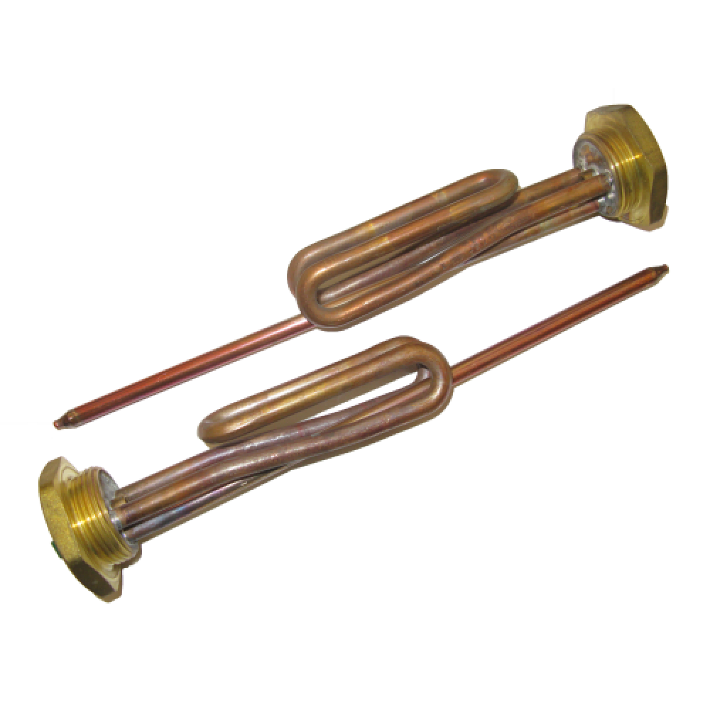 Тэн гнутый медный для бойлера мощностью 2,0 КВт на резьбе 1 1/4" (под гайку) с местом под анод М6;