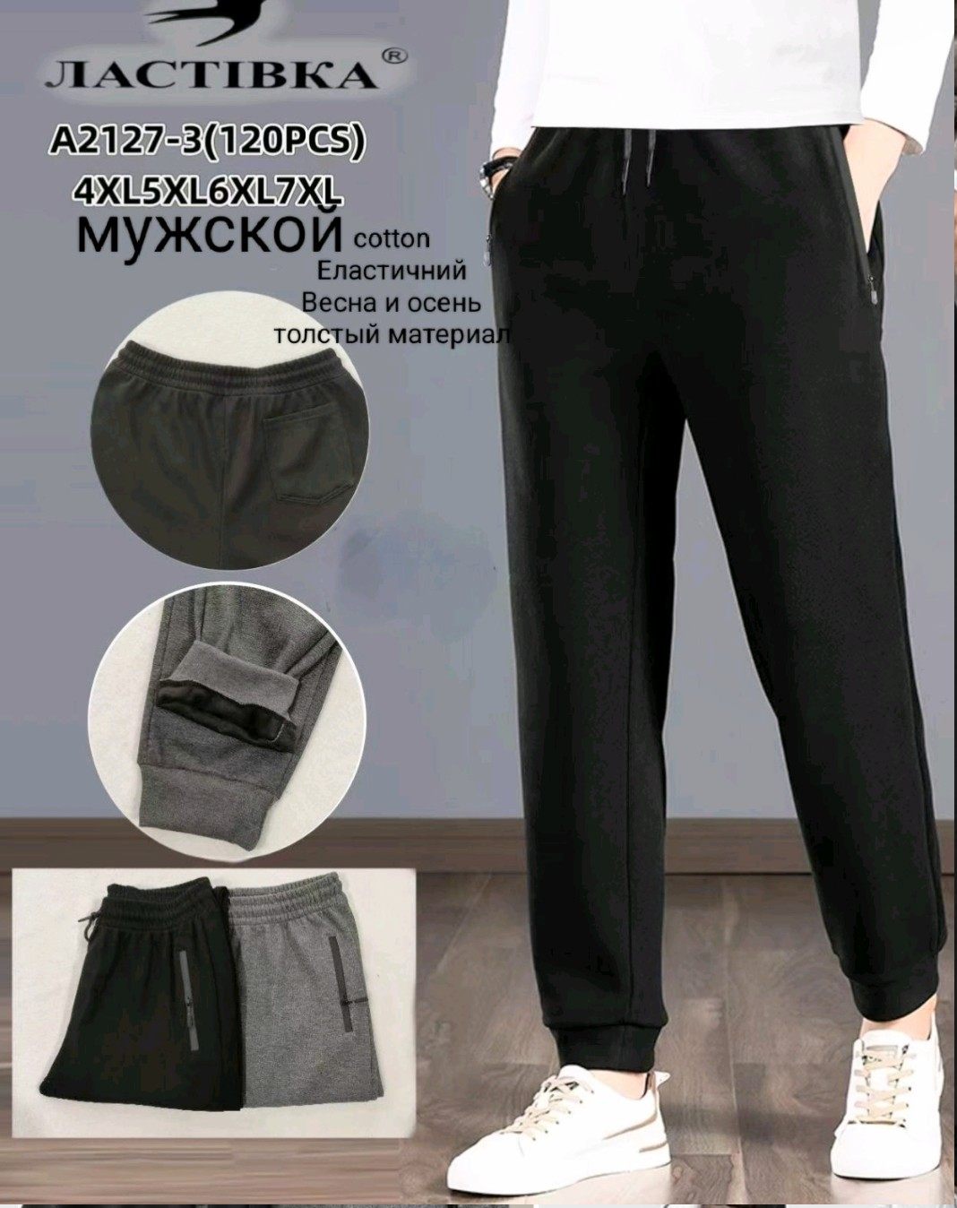 Брюки чоловічі спортивні трикотажні на манжеті. Розміри: XL, 2XL , 3XL, 4XL, 5XL