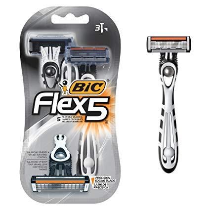 Станок одноразовый BIC FLEX 5, 3 штуки в упаковке, 5 лезвий+1 лезвие триммер, плавающая головка на шарнире.
