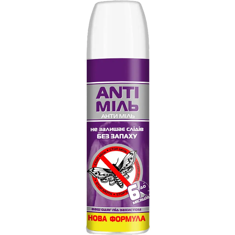 Аерозоль Anti Моль - відмінний засіб для знищення молі та її личинок із тривалим ефектом. Не має різкого чи неприємного запаху. Завдяки зручній формі аерозолю засіб швидко та рівномірно розподіляється по оброблюваній поверхні. Не забруднює одяг, не залишає плям чи смуг. Ефективно працює на виробах зі шкіри, хутра та текстилю. Його легкий аромат освіжає одяг і запобігає появі затхлості. Одного балончика достатньо для обробки 14-19 м3. Має тривалий термін дії - до 6 місяців після нанесення