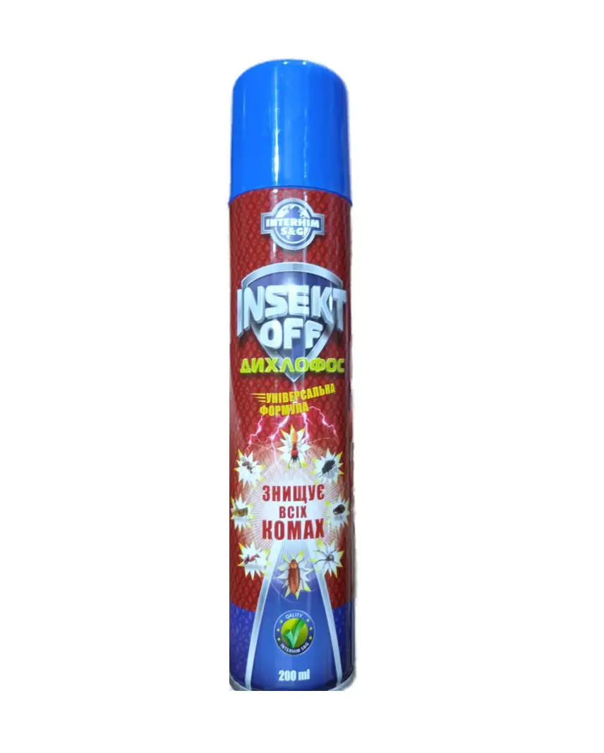 Дихлофос-аэрозоль 200 мл INSEKT OFF от муравьев, тараканов, клопов, пауков, комаров, мух, моли и ос
