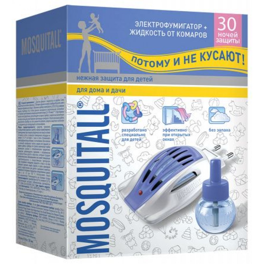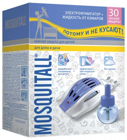 Комплект Mosquitall для детей: электрофумигатор + жидкость от комаров, 30 ночей защиты
