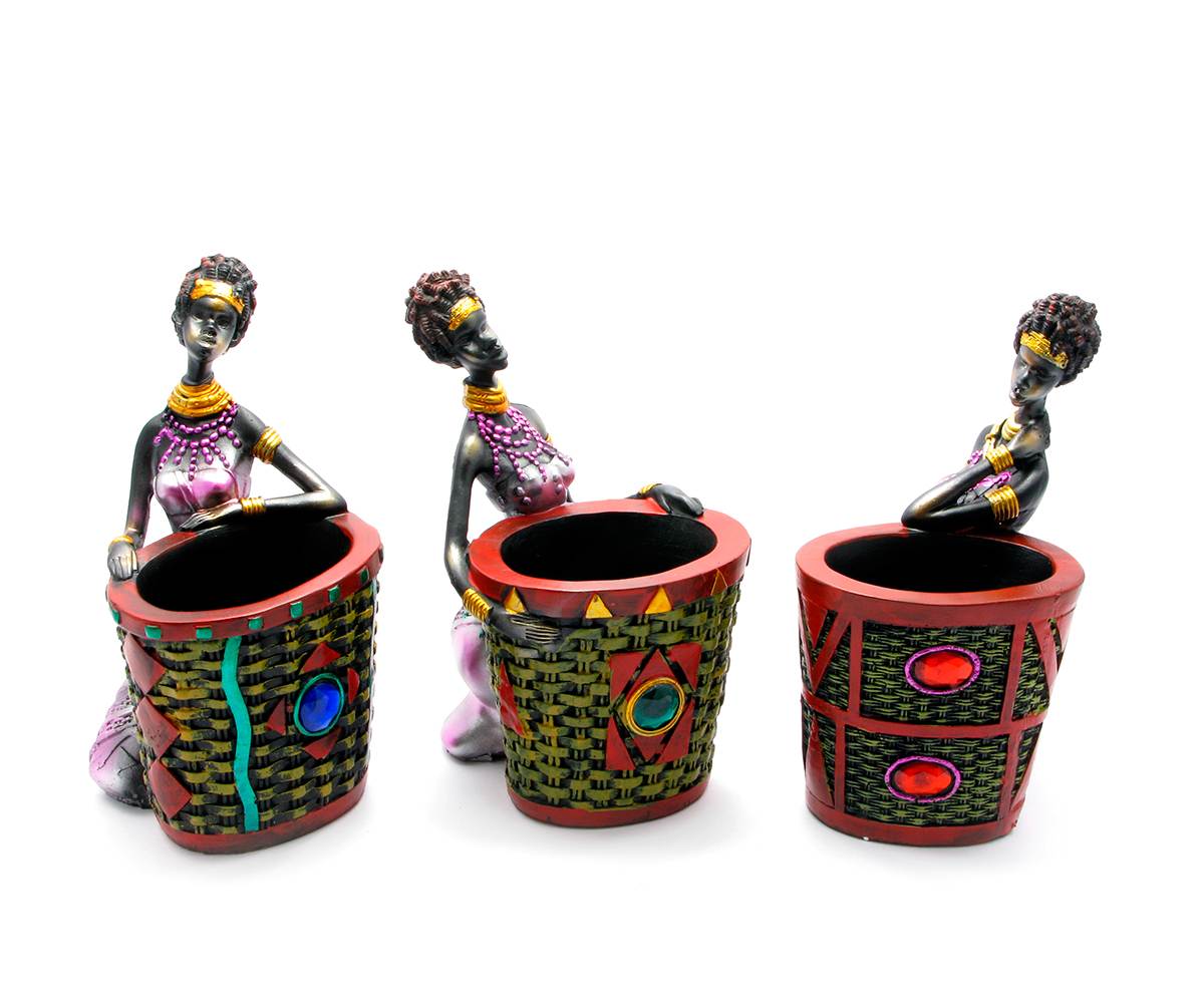 Подставка для ручек Африканка с корзиной (17х8.5х8 см) код 26974