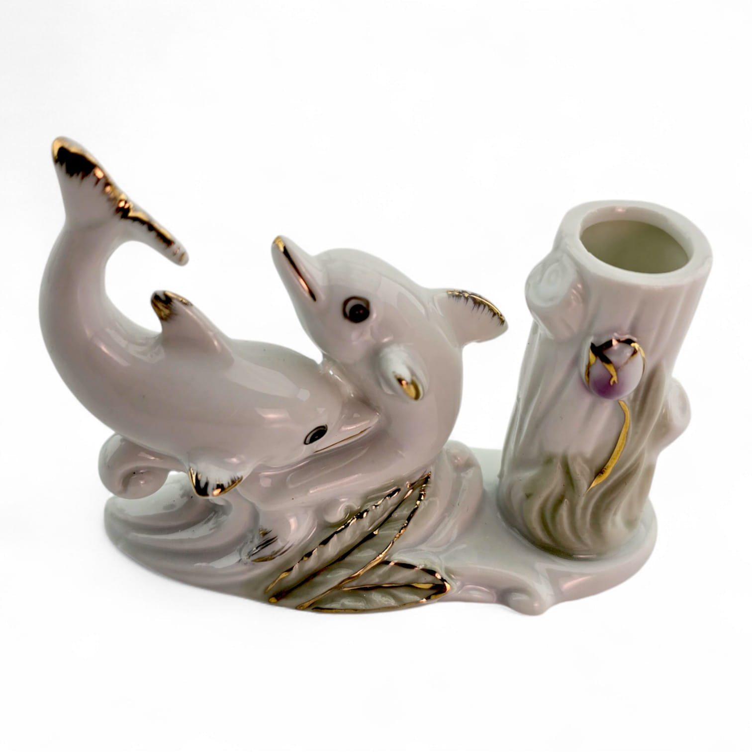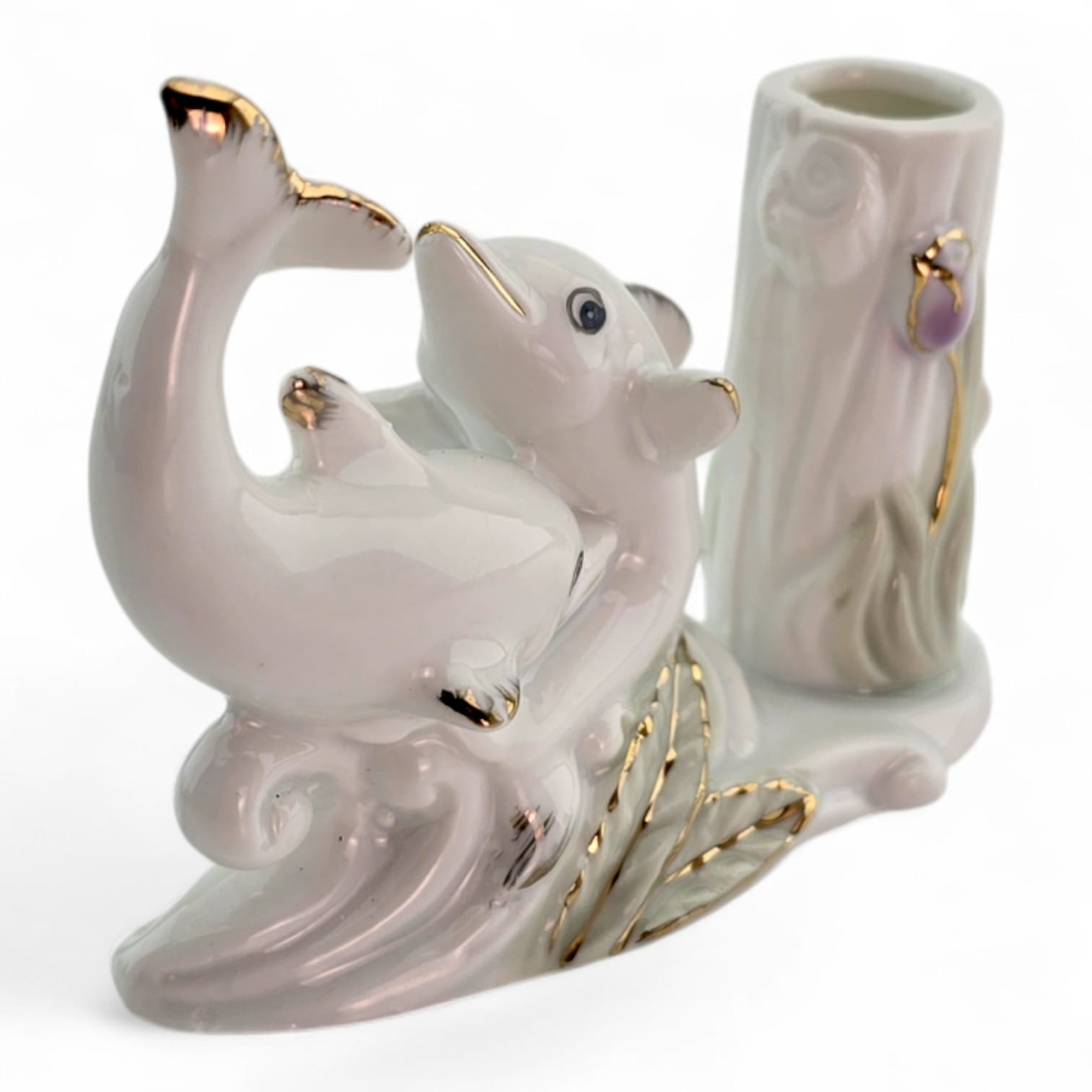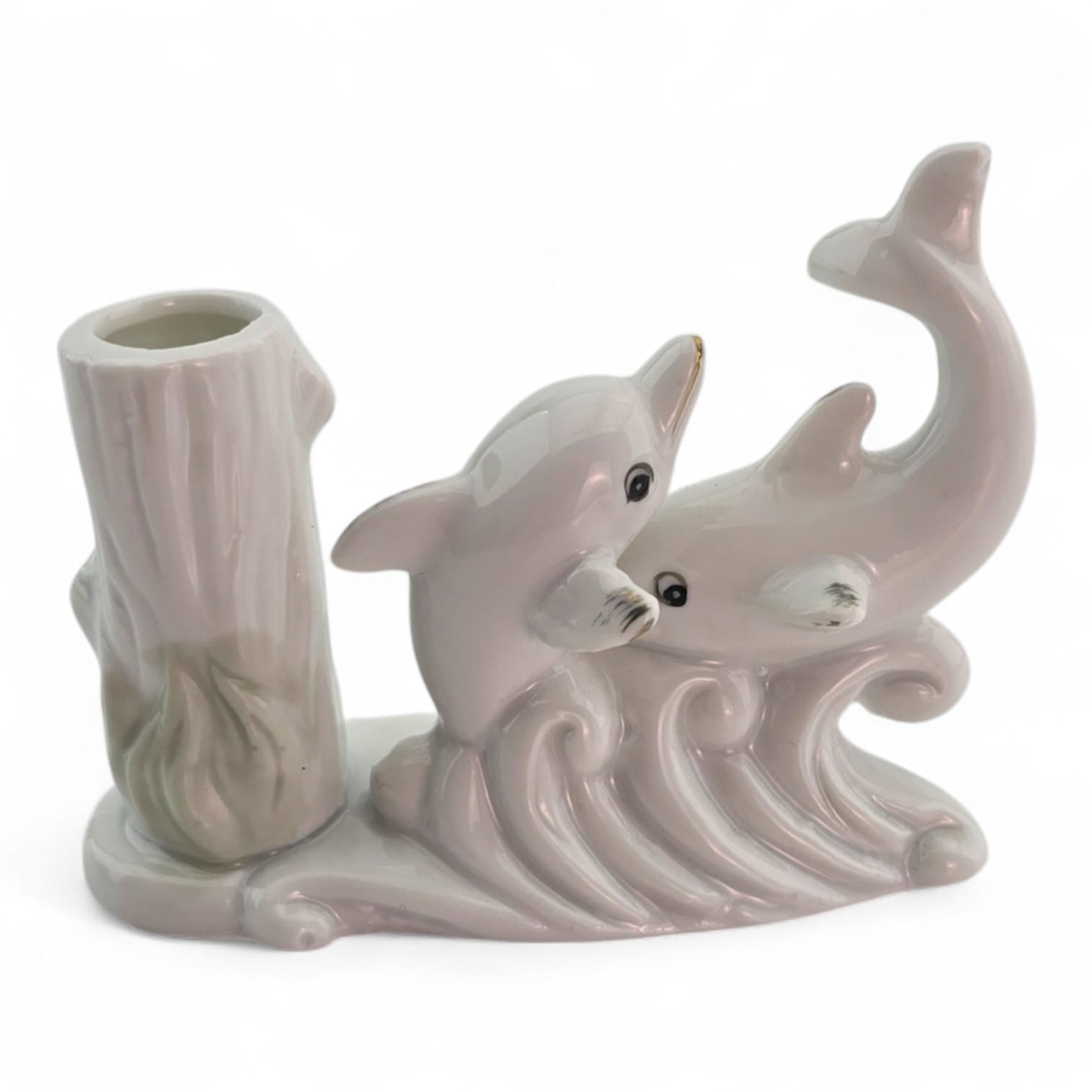 подставка для зубочисток, держатель зубочисток, статуэтка дельфины, декор для дома, настольный декор, фарфор, подарок, кухонные аксессуары, сувенир с дельфинами