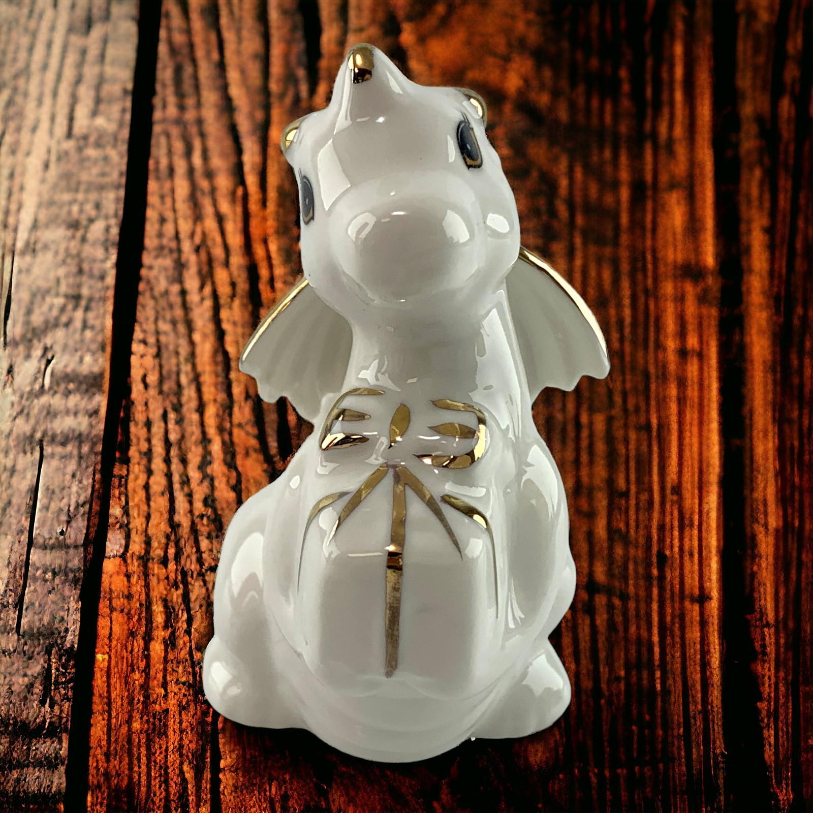Фарфоровый дракон в белом цвете с золотистыми деталями – это не только произведение искусства, но и символ изысканности и доброжелательности. Дракон деликатно обнимает коробку подарка, будто предоставляя ее вам с уважением и заботой.