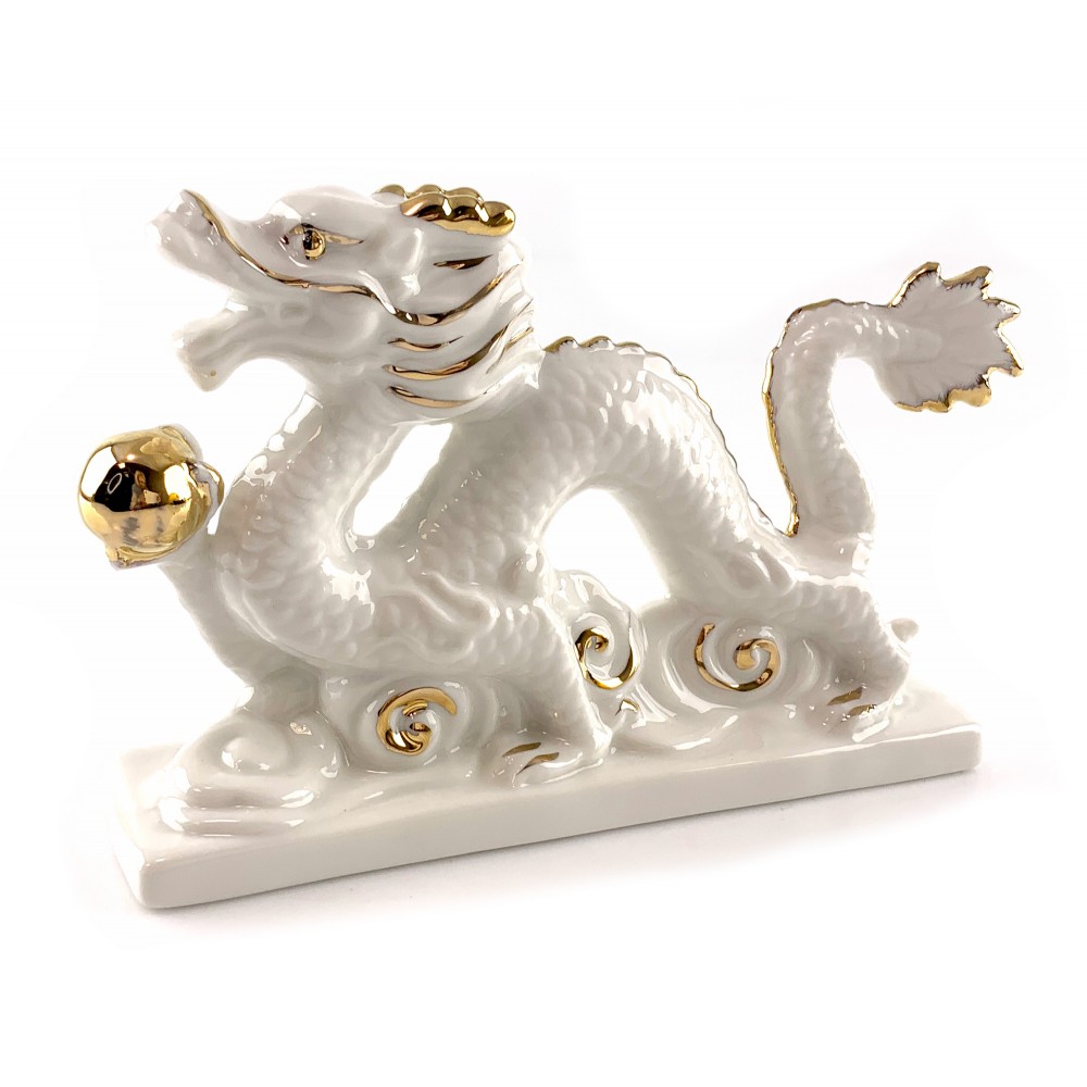 Фарфоровый дракон в белом цвете с золотистыми деталями — это не просто украшение, это произведение искусства, которое воплощает в себе изысканность и элегантность. Дракон, стоит как страж над вашим пространством, символизируя силу и долговечность.