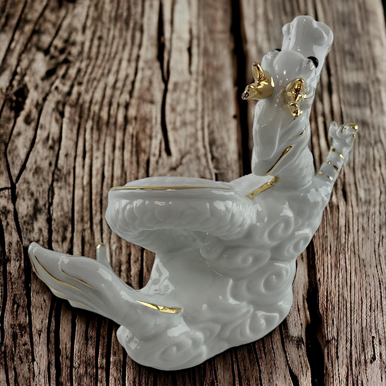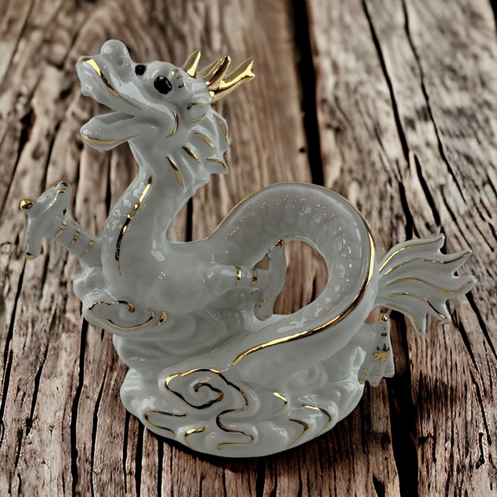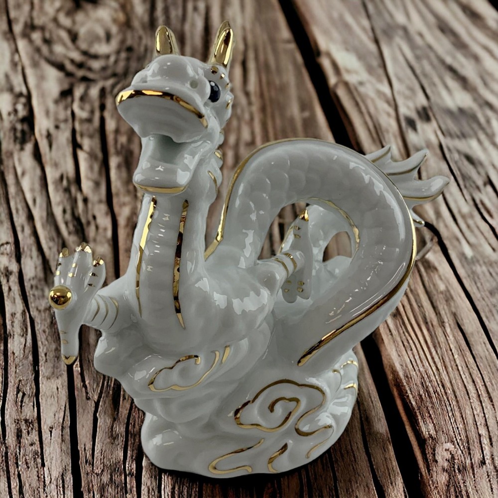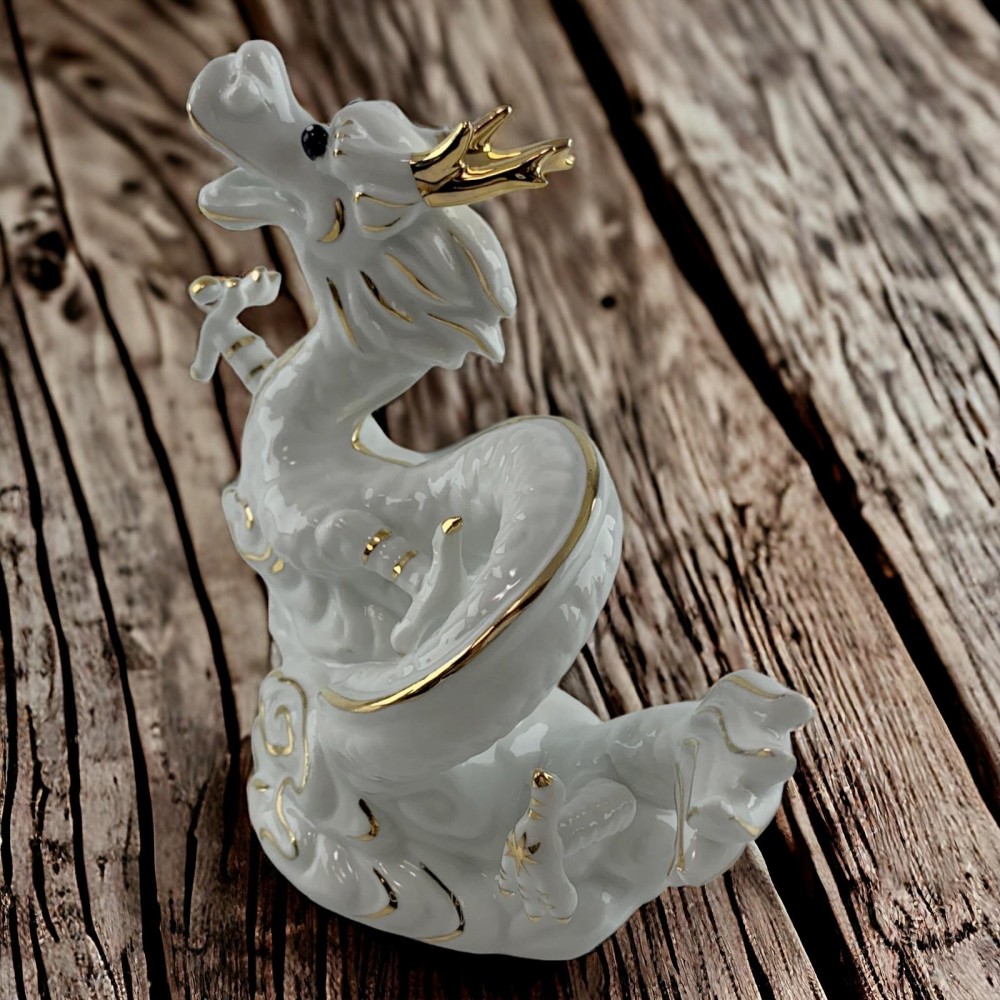 Фарфоровый дракон в белом цвете с золотистыми деталями — это не просто украшение, это произведение искусства, которое воплощает в себе изысканность и элегантность. Дракон, стоит как страж над вашим пространством, символизируя силу и долговечность.