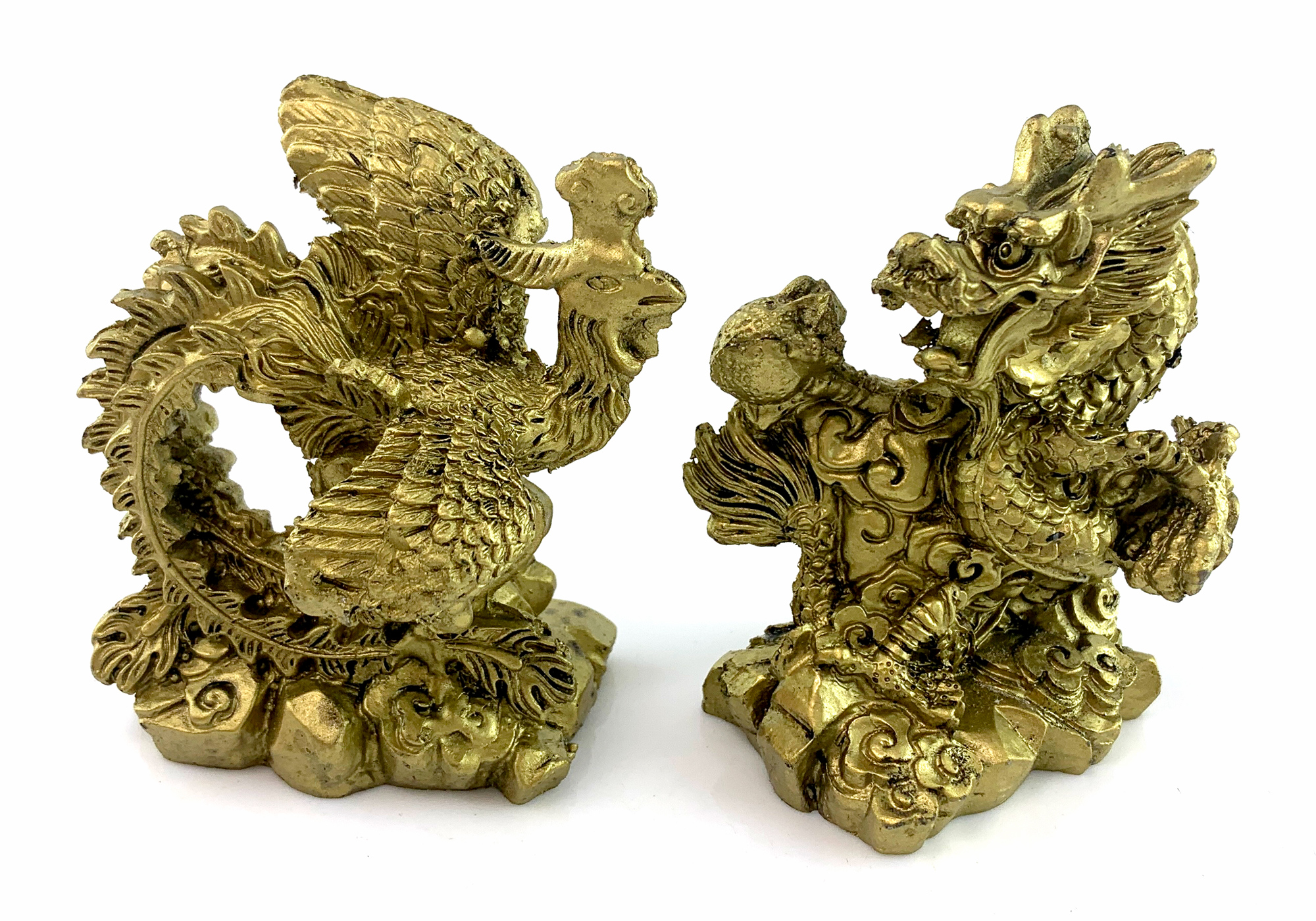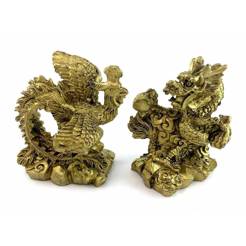 Дракон и Феникс каменная крошка (дракон 8х7х4,6 см,феникс 8х7,2х5,2 см)