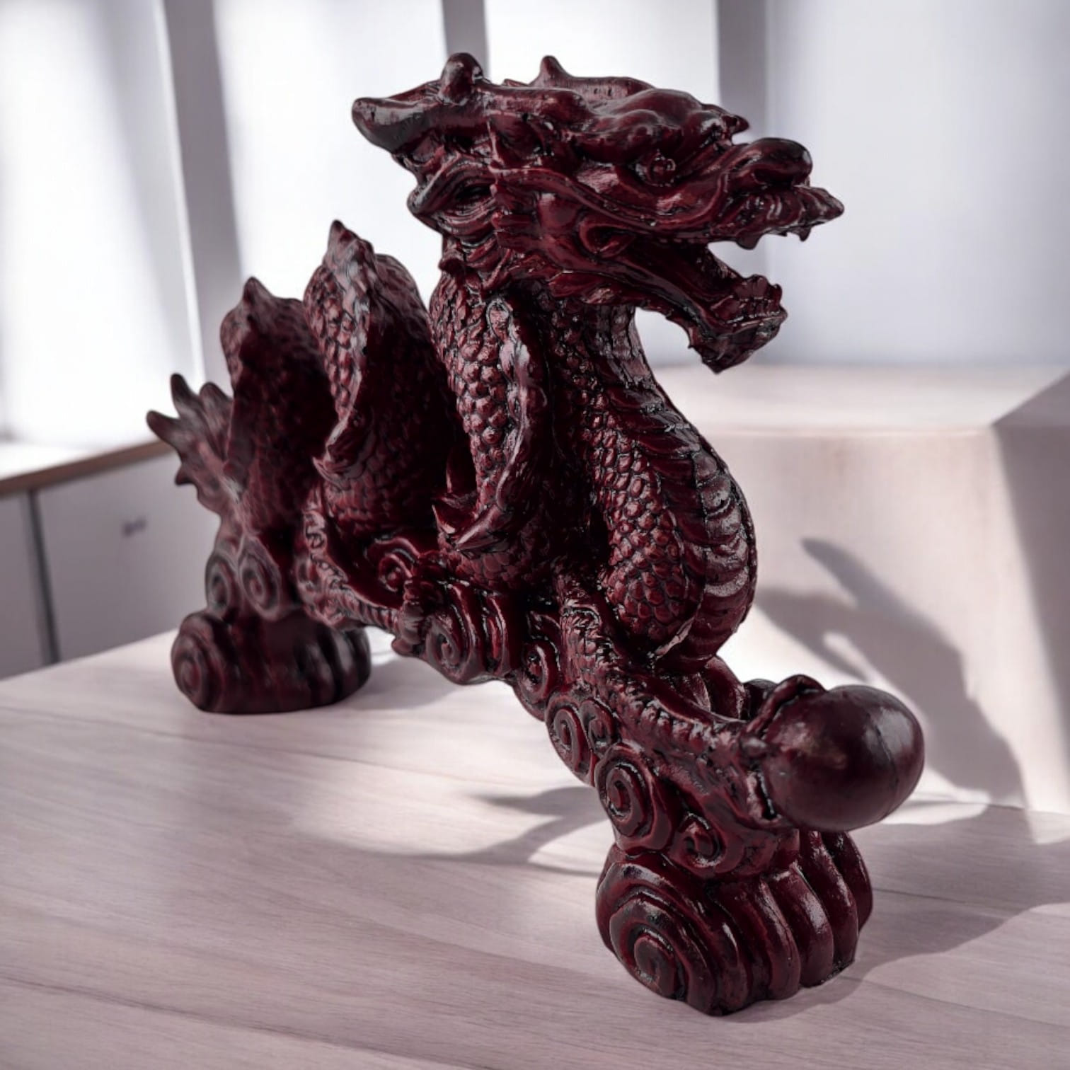 Особенности: Декоративная фигурка дракона символизирующая защиту, силу и мудрость. Подходит для оформления интерьера, придавая ему уникальность и восточный шарм.