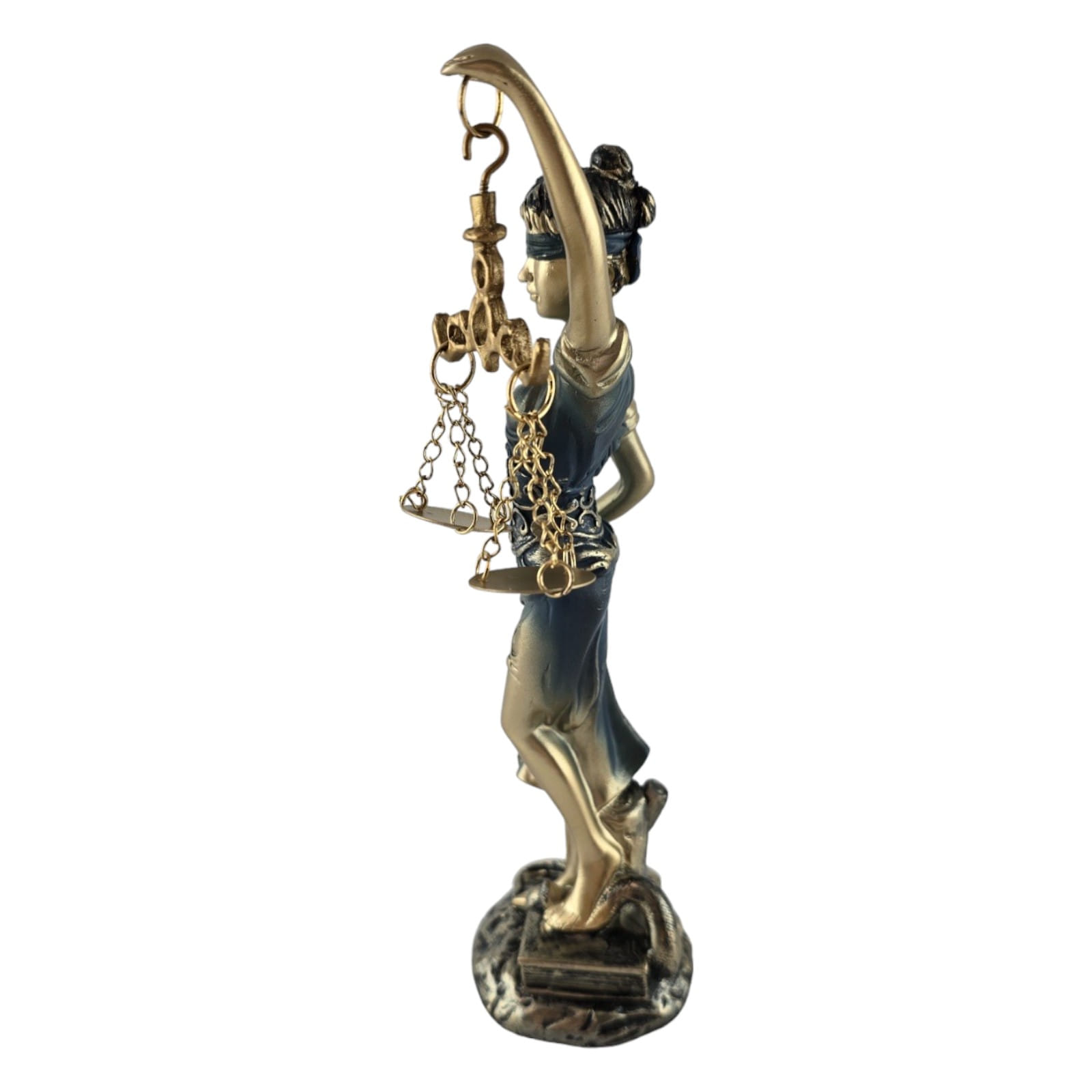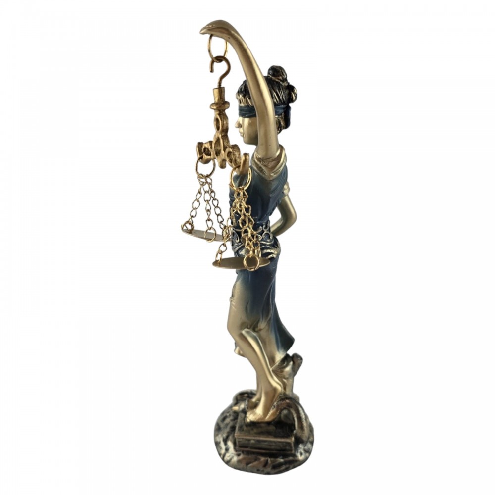 Представляем вашему вниманию статуэтку Фемиды - символа правосудия и баланса, которая изготовлена из полимера серебристого цвета с голубым оттенком на платье и на повязке на глазах. Эта замечательная скульптура поражает своей изысканностью и мастерством изготовления.