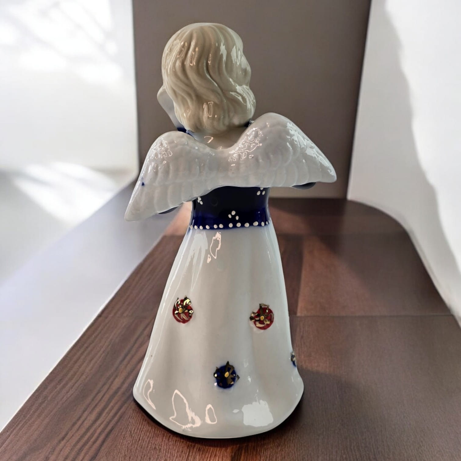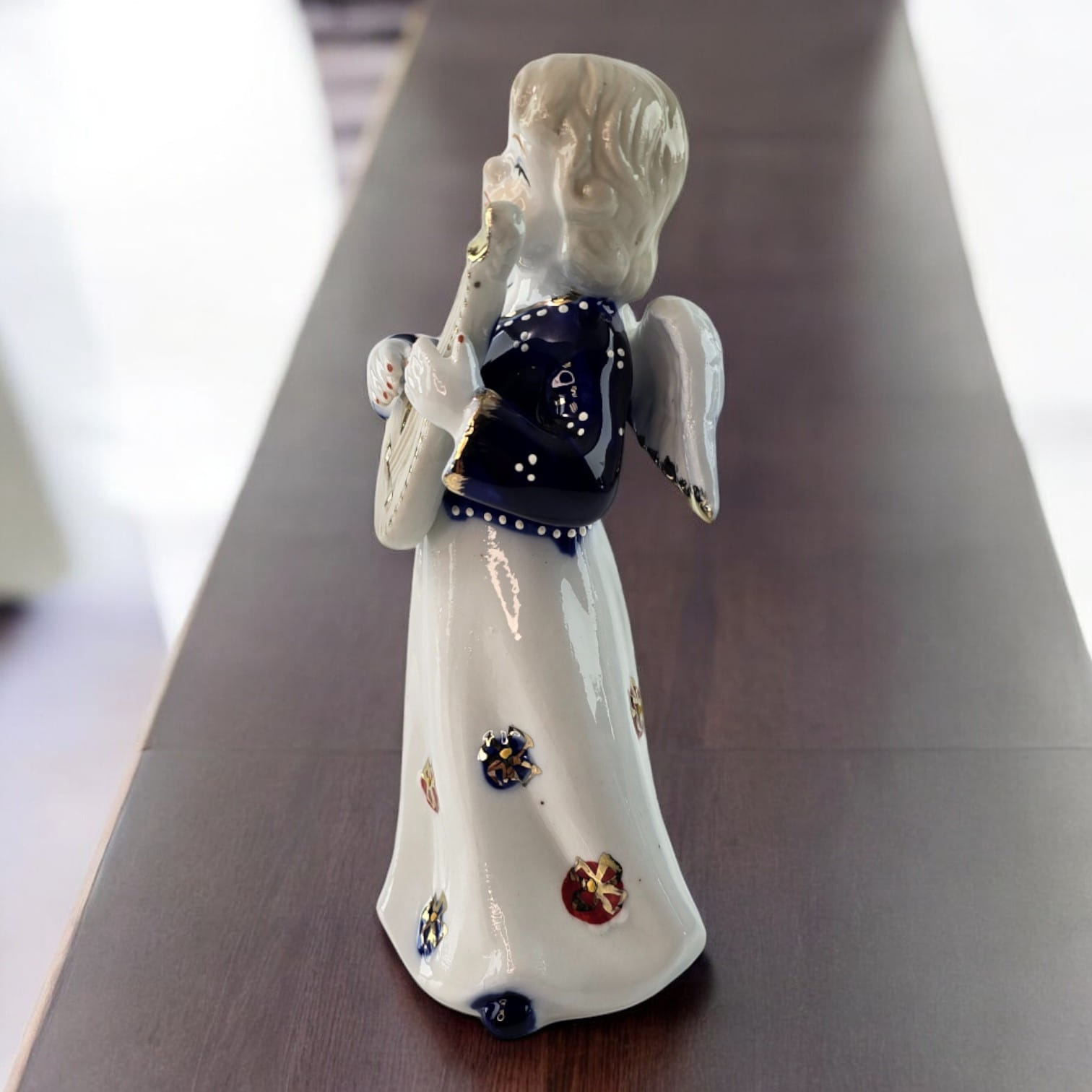 Эта прекрасная фигурка ангела с мандолиной добавит очарования вашему дому. Ангел держит мандолину с нежностью, а его лицо излучает доброту и мир. Белоснежное платье статуэтки украшено яркими декоративными элементами, которые делают фигурку более праздничной. Золотистые акценты добавляют утончённости и привлекают внимание к деталям. Идеально подходит как для декора интерьера, так и для подарка, символизирующего гармонию и радость.