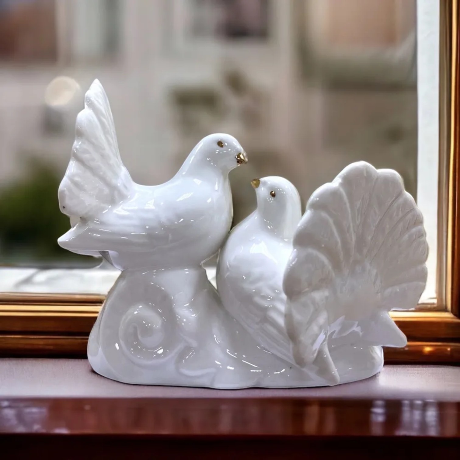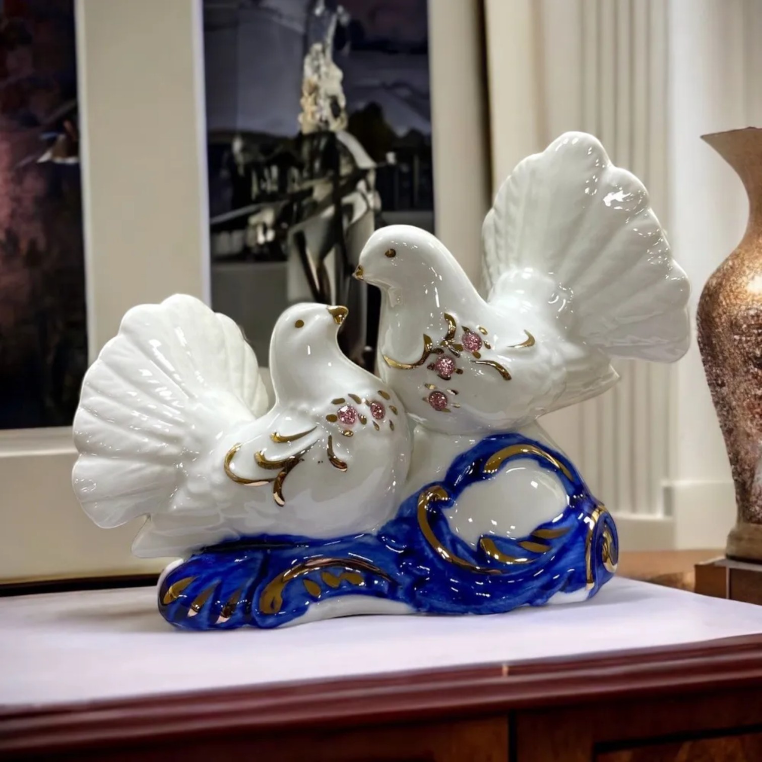 Элегантная фигурка из фарфора в виде пары голубей станет изысканным украшением вашего интерьера или отличным подарком на любое торжество.