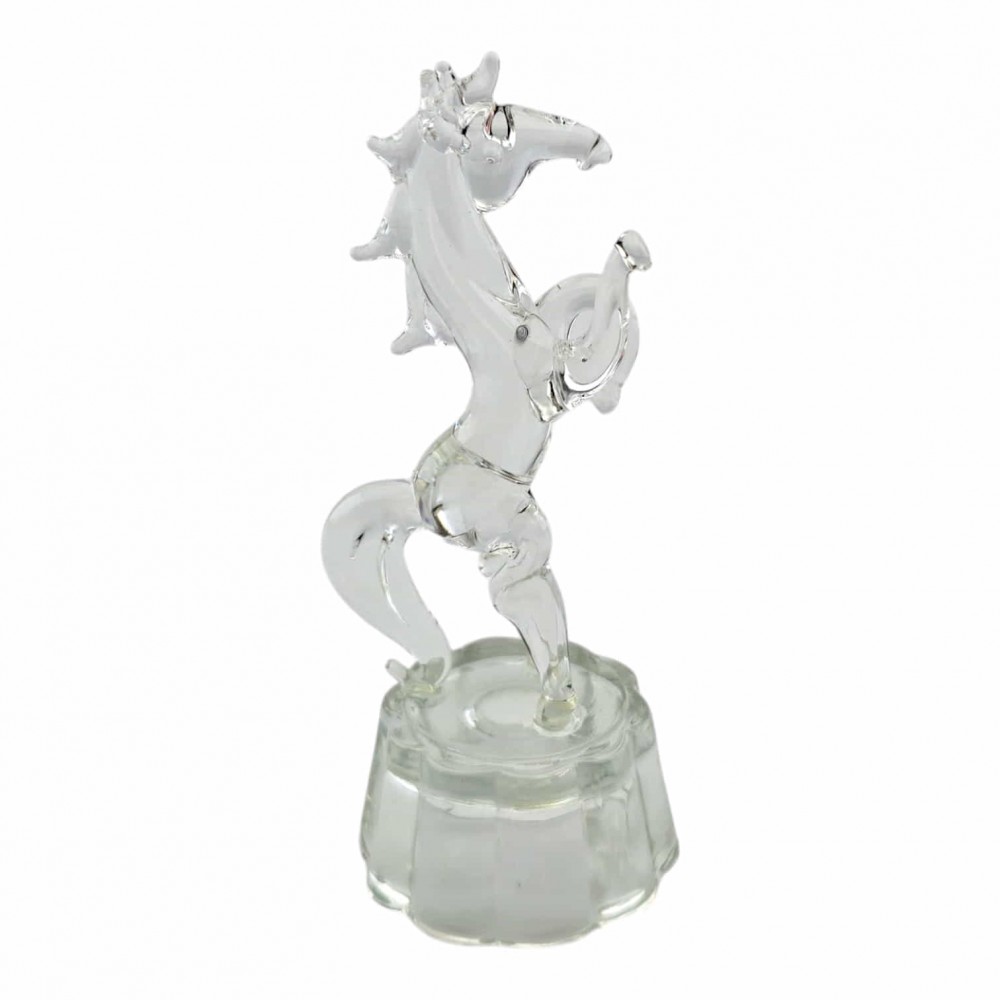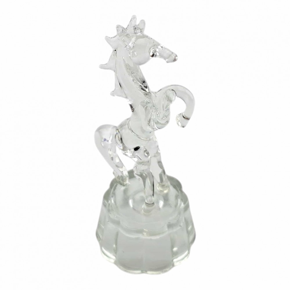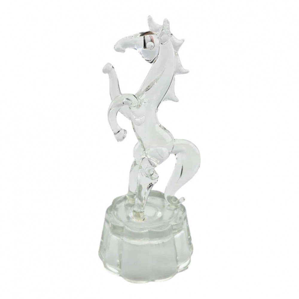 Миниатюрная хрустальная фигурка лошади, вставшей на дыбы, на прозрачной подставке. Чистый блеск хрусталя и аккуратное исполнение делают статуэтку заметным акцентом на полке, каминной полке или рабочем столе. Отличный сувенир и небольшой подарок для любителей изящного декора.