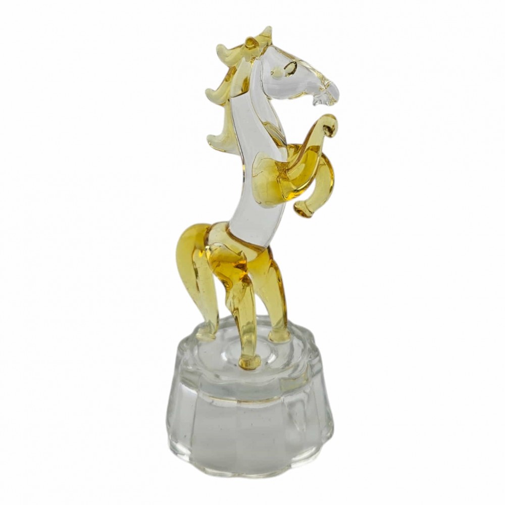 хрустальная статуэтка, фигурка лошадь, стеклянная фигурка, лошадь на дыбах, прозрачно-золотистая, сувенир лошадь, декор интерьера, подарок, коллекция миниатюр, хрусталь, Китай