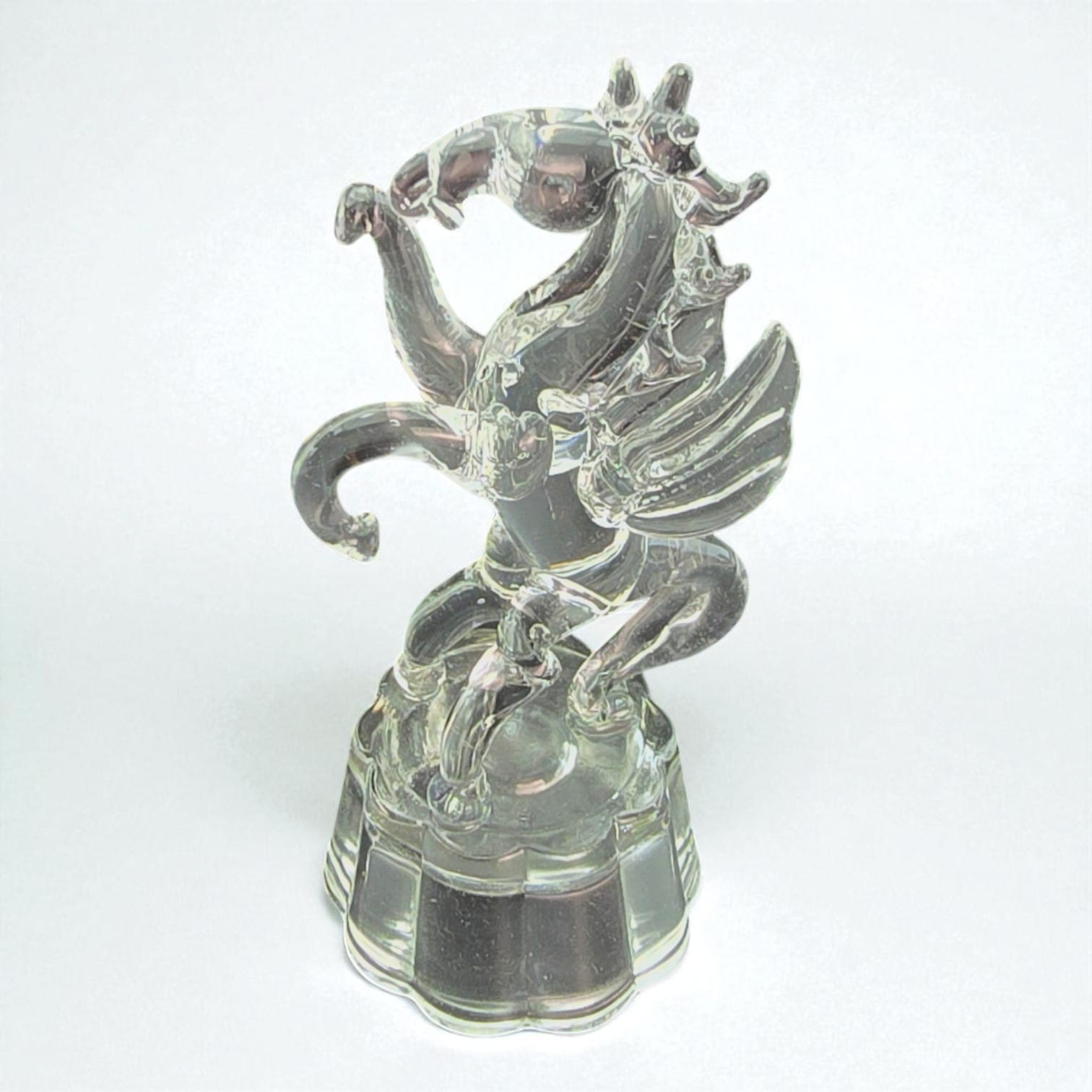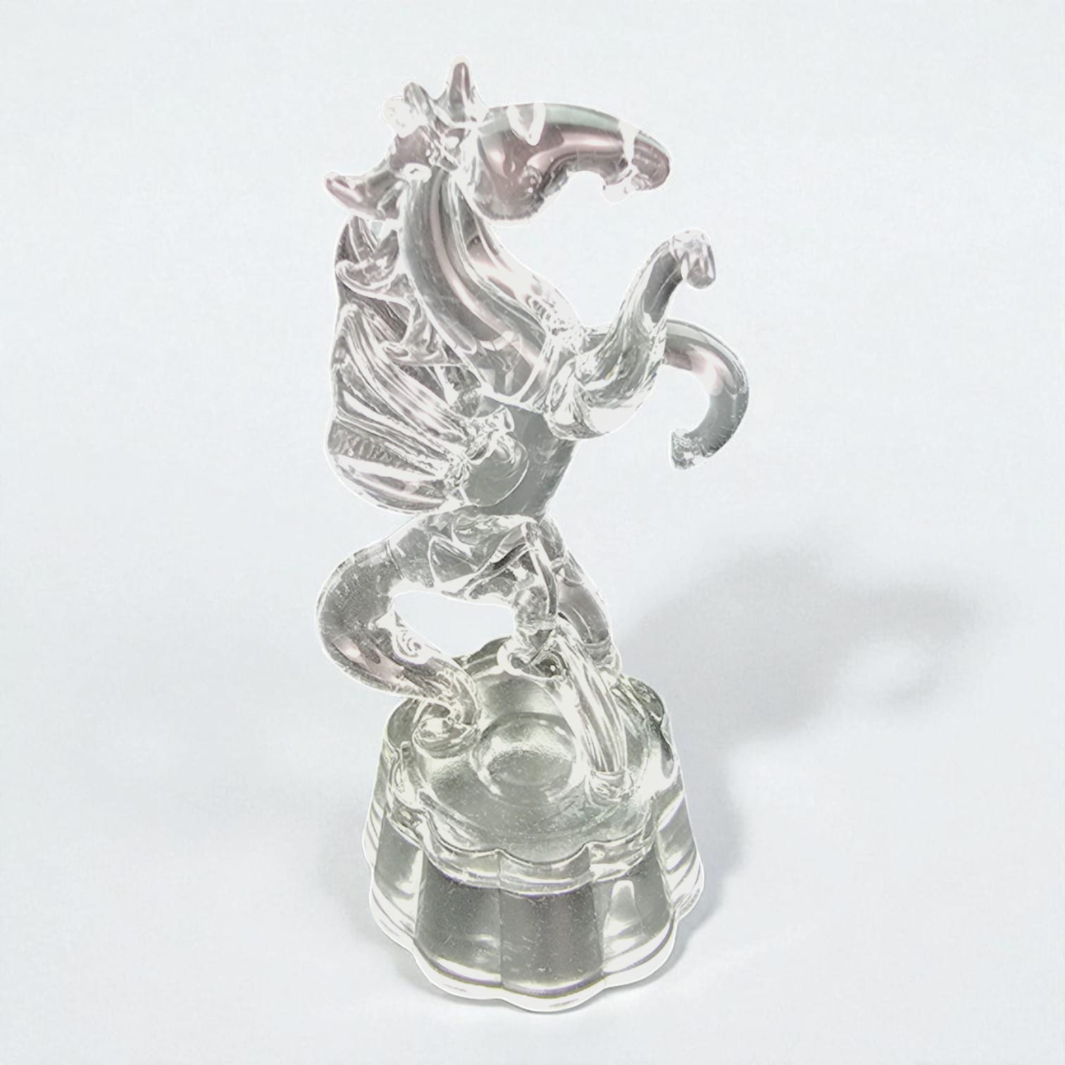 Изящная хрустальная статуэтка Пегаса, лошади с крыльями, на прозрачной подставке. Компактный размер 10x4 см удобно разместить на полке, рабочем столе или туалетном столике. Символ вдохновения, скорости и удачи, удачный подарок коллекционеру, любителю интерьера и как талисман к году Лошади. Кристалл красиво преломляет свет и добавляет пространству лёгкости.