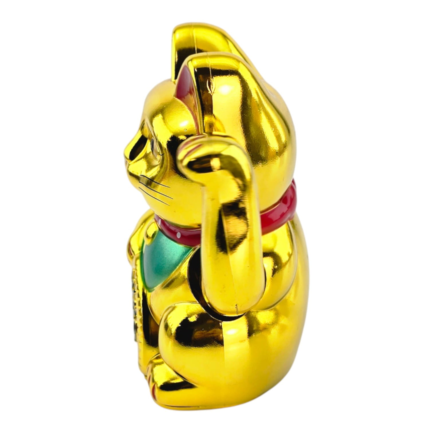 Золотая манэки-неко - традиционный восточный талисман, «призывающий» удачу и деньги. Фигурка работает от 1 батарейки АА: лапка ритмично машет, привлекая внимание и символически приглашая достаток в дом или бизнес.