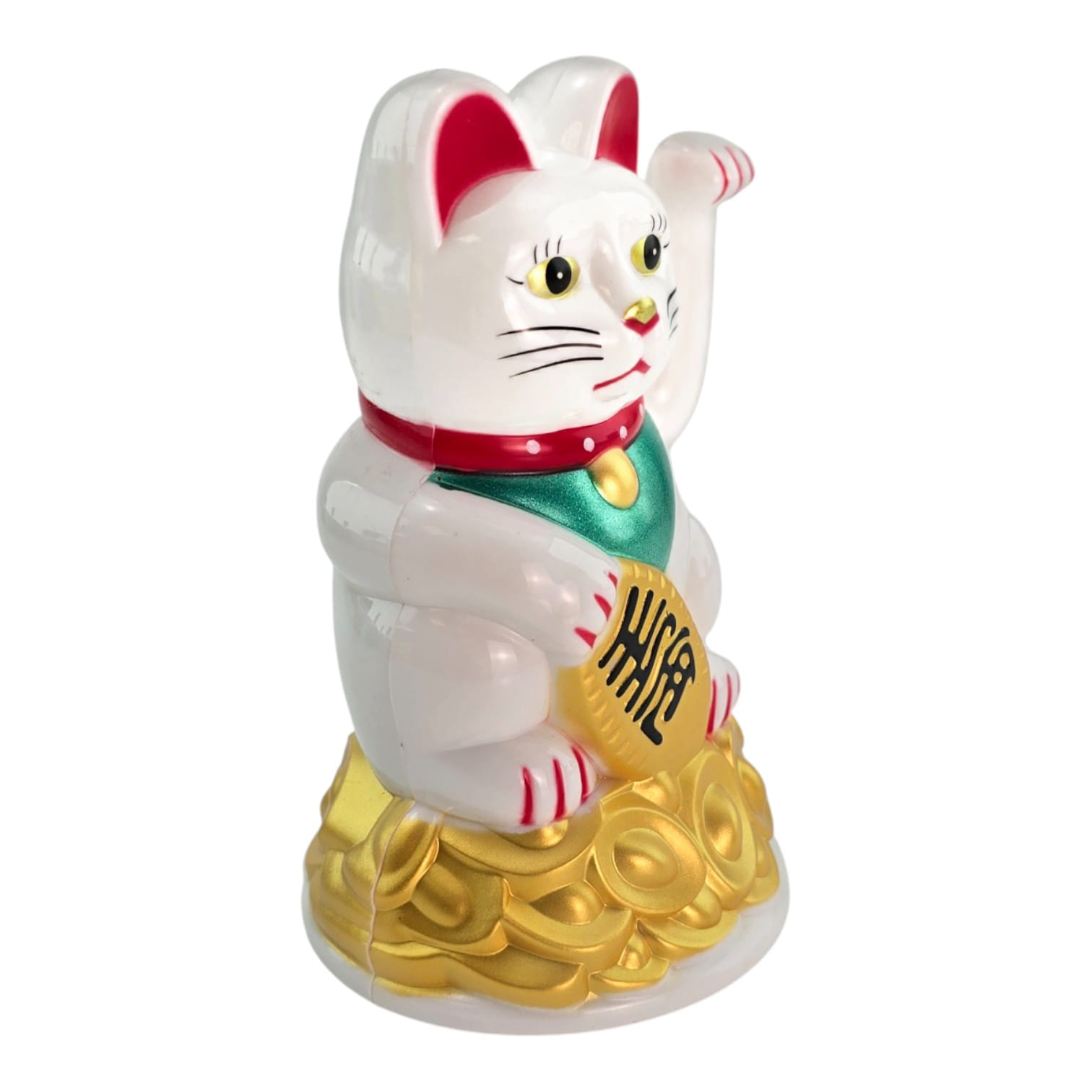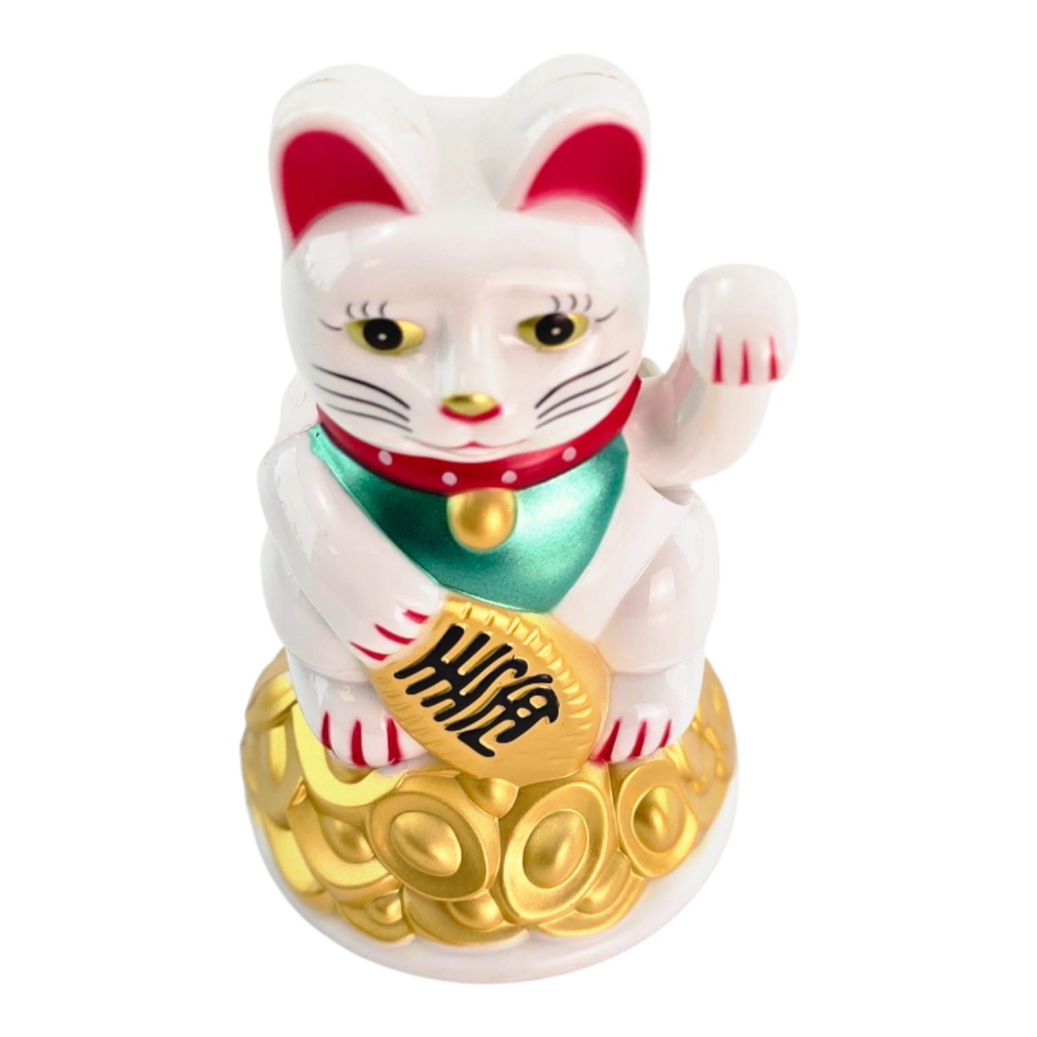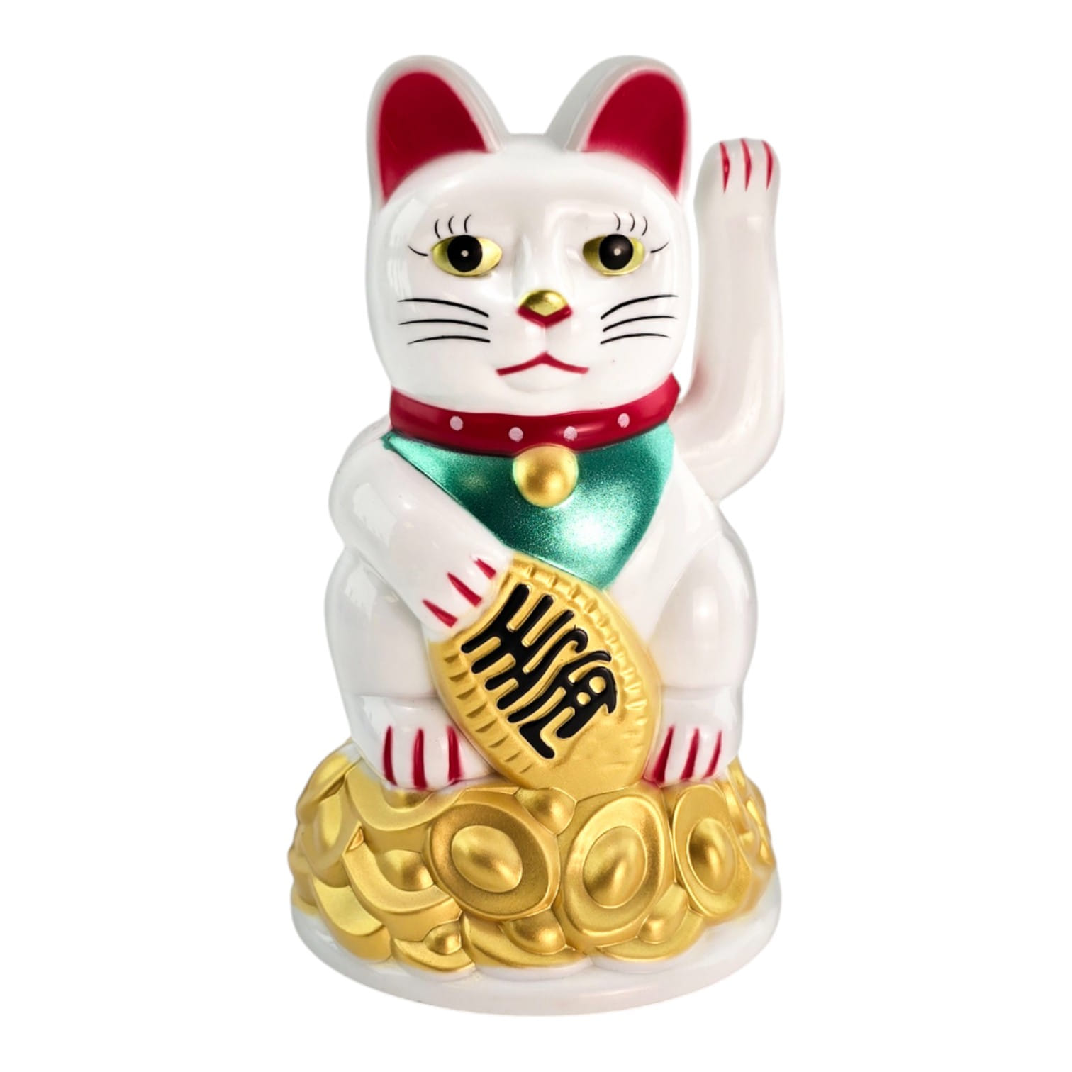 Манэки-нэко — известный «кот удачи», талисман достатка. Фигурка поднимает лапку и ритмично машет ею, как бы призывая удачу и клиентов. В лапе кот держит монету кобан с иероглифами богатства — знак материального благополучия. Такой талисман ставят у входа, на стойке рецепции, на кассе, в витрине, в офисе или дома (зона богатства по фэн-шуй). Работает от одной батарейки AA и станет ярким подарком предпринимателям и любителям восточной символики.