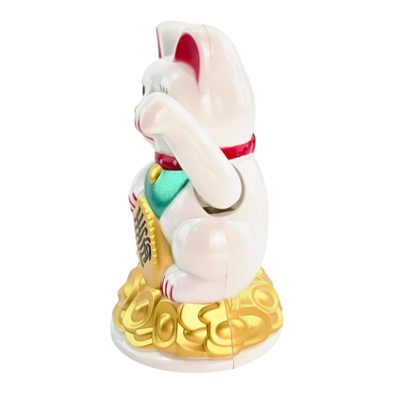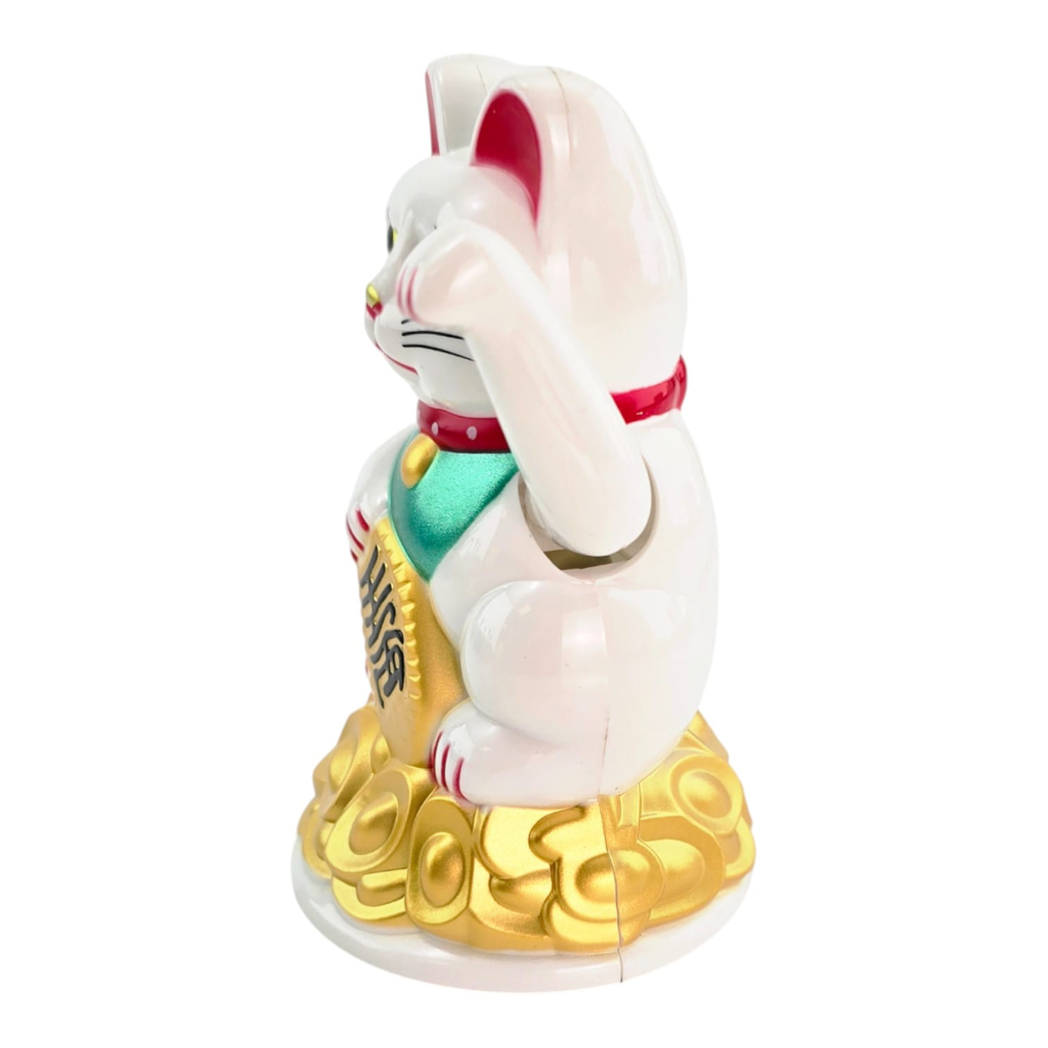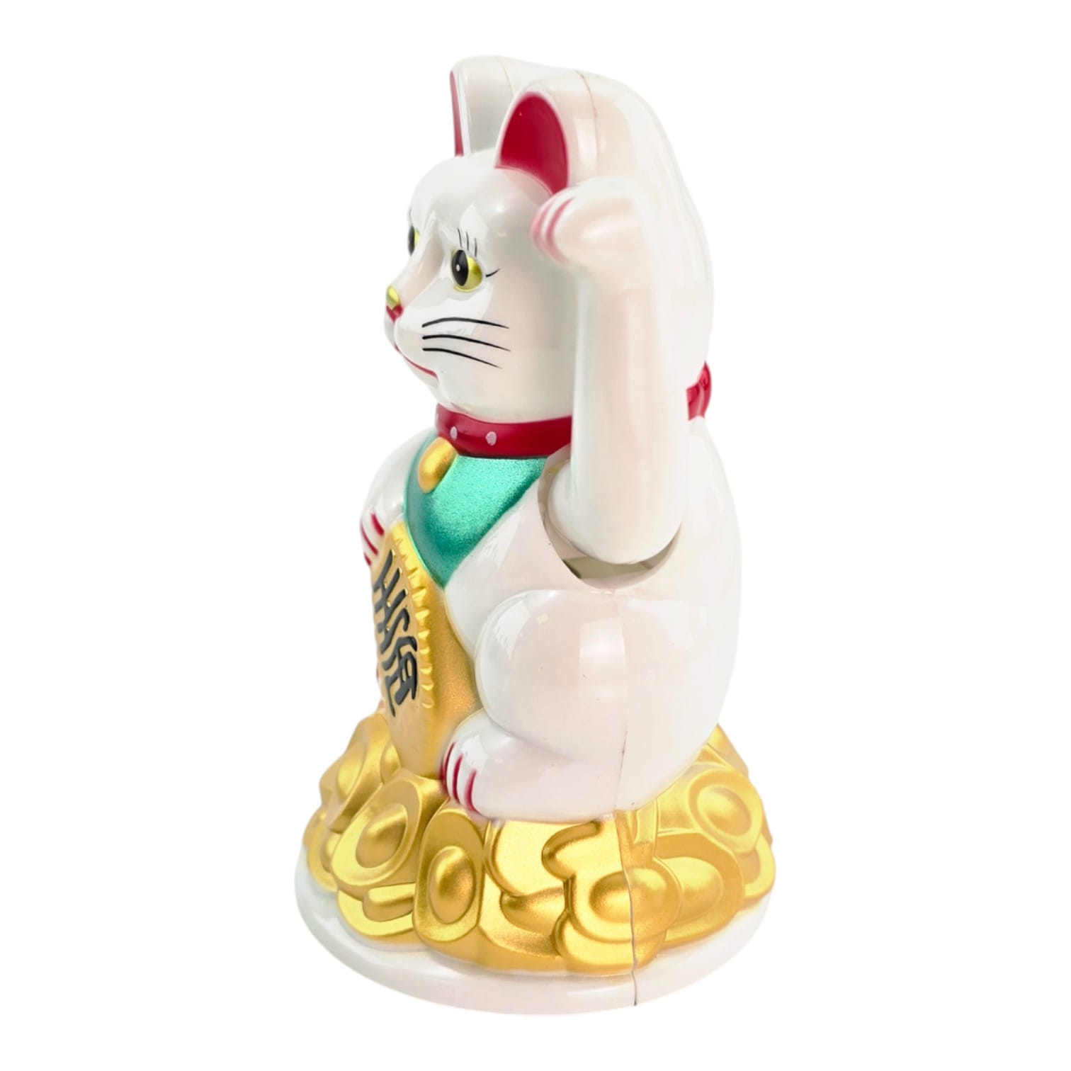 Манэки-нэко — известный «кот удачи», талисман достатка. Фигурка поднимает лапку и ритмично машет ею, как бы призывая удачу и клиентов. В лапе кот держит монету кобан с иероглифами богатства — знак материального благополучия. Такой талисман ставят у входа, на стойке рецепции, на кассе, в витрине, в офисе или дома (зона богатства по фэн-шуй). Работает от одной батарейки AA и станет ярким подарком предпринимателям и любителям восточной символики.