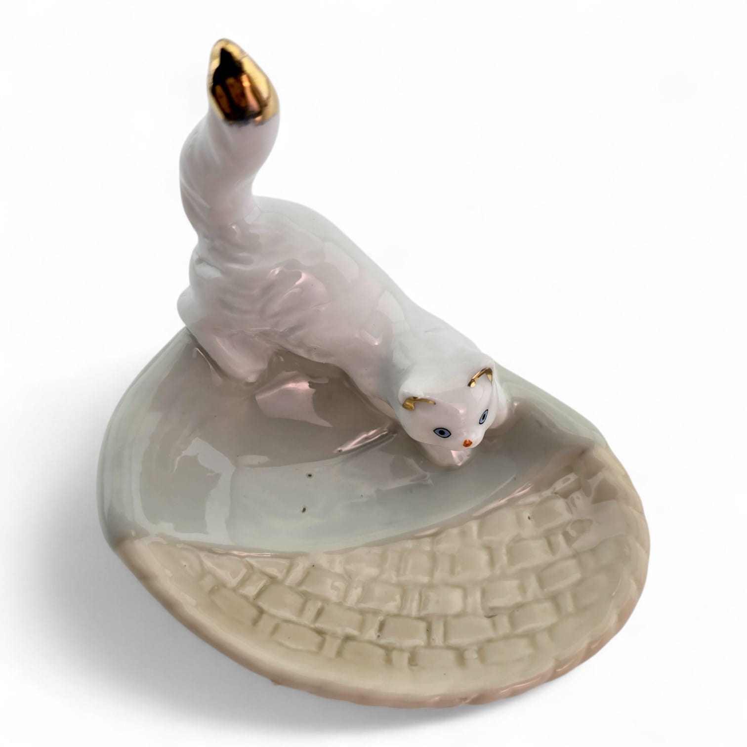 подставка для украшений, тарелочка для колец, держатель для колец, керамическая подставка, декор с котиком, декоративная тарелочка, маленькая мыльница, подарок любителю кошек, декор для дома, органайзер для украшений