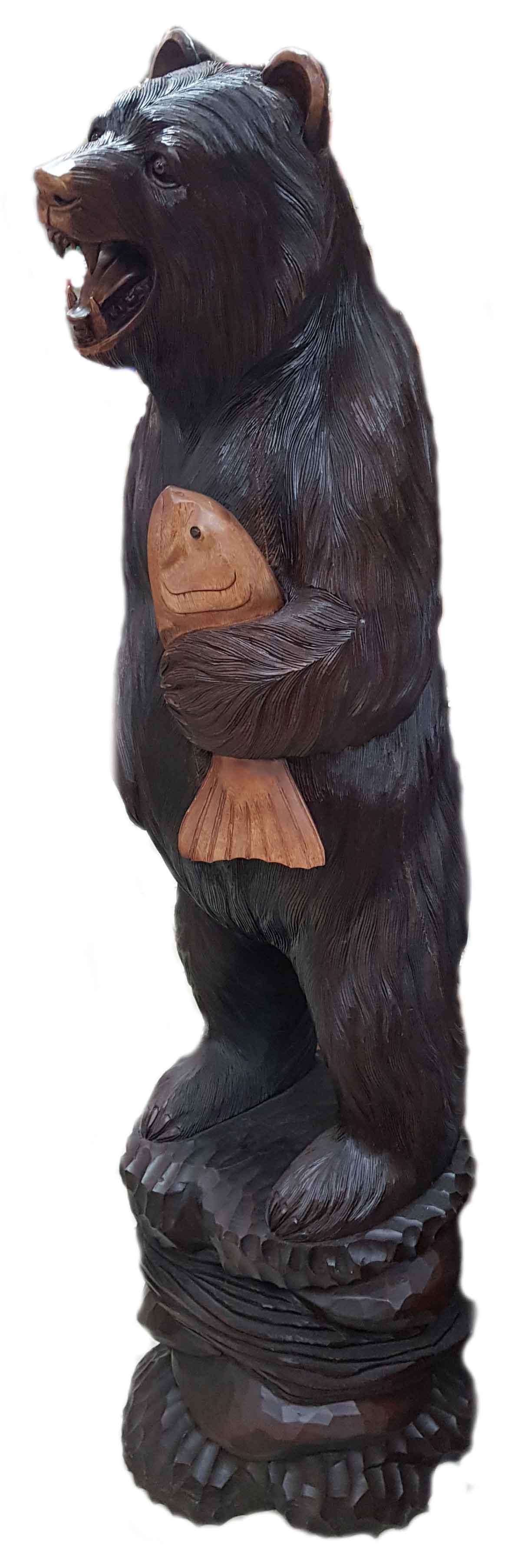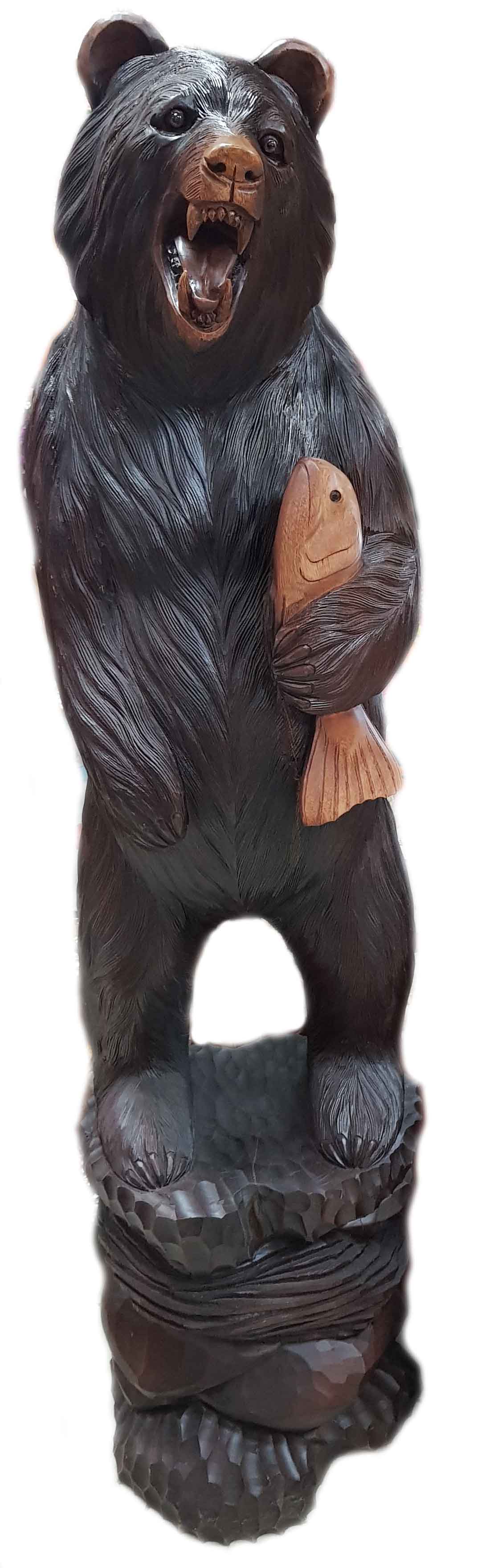 Статуэтка "Медведь с рыбой" из дерева суара - это уникальный предмет декора, который может украсить любой интерьер. Высотой в 150 см и весом 40 кг, эта статуэтка привлекает внимание своими большими размерами и красивой отделкой.