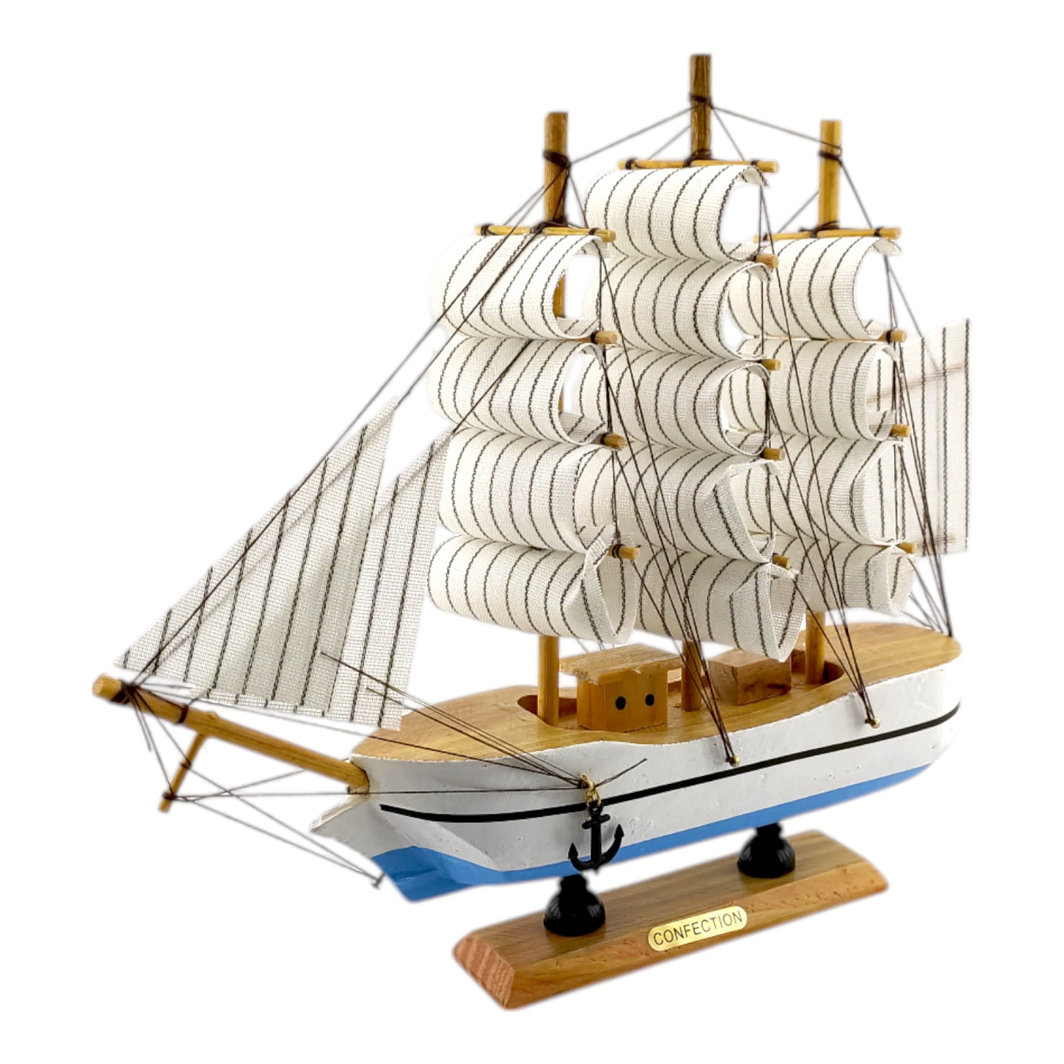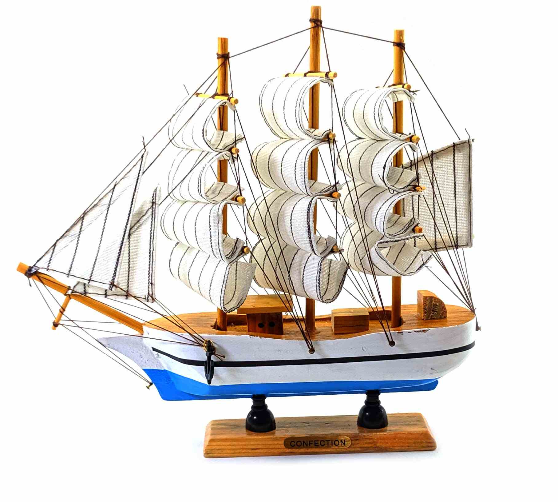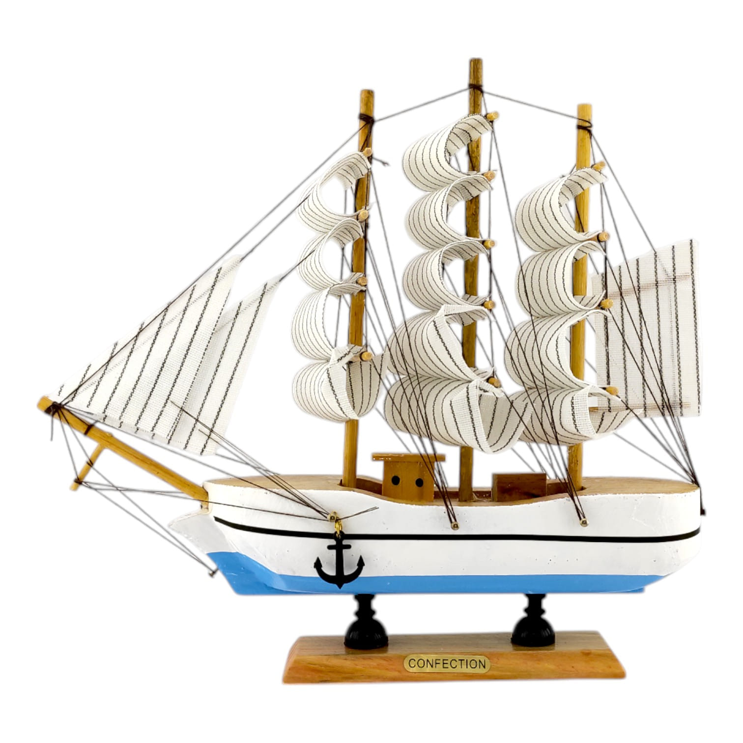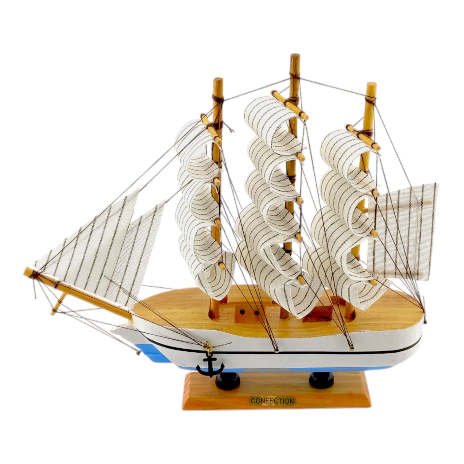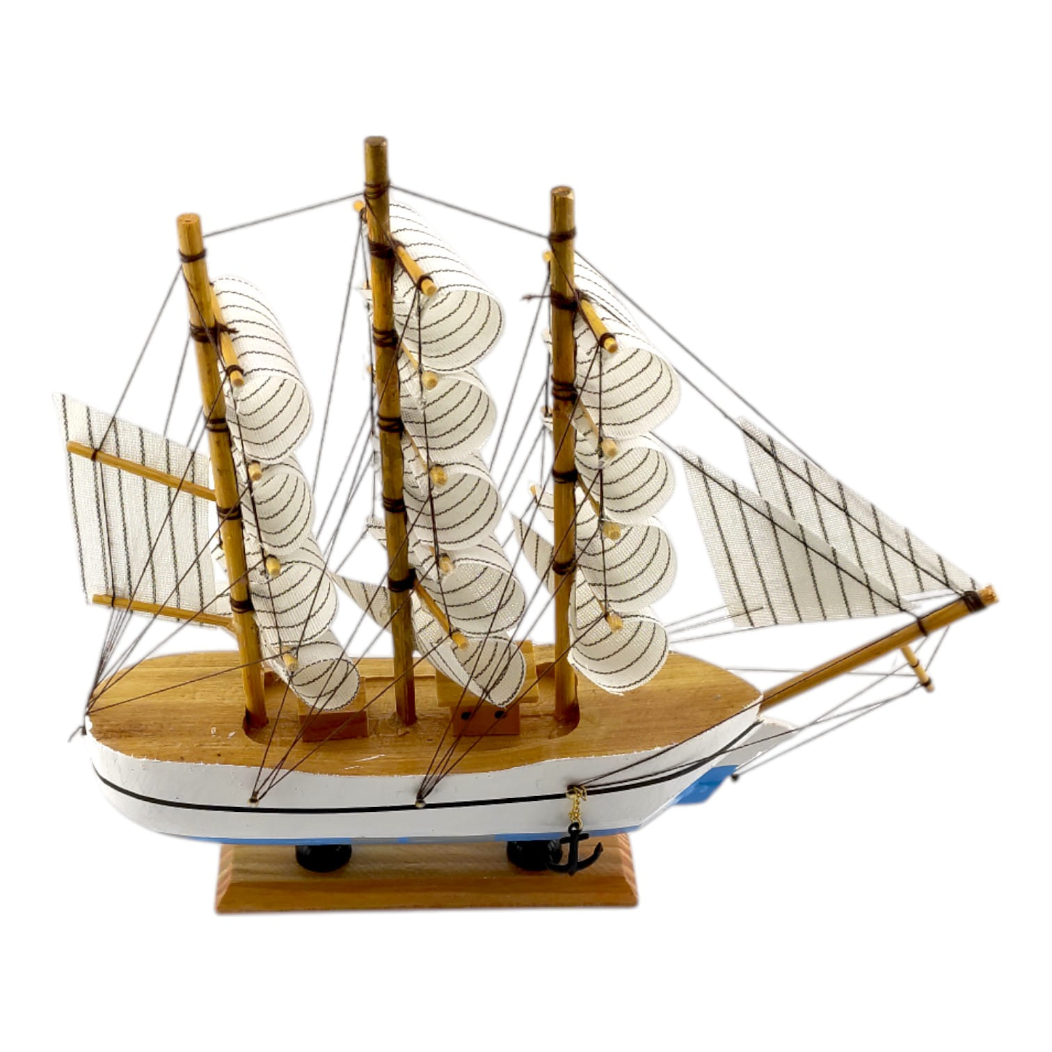 Деревянный парусник на подставке. Этот элегантный парусник - настоящий символ свободы и мечты о далеких морских путешествиях. Его деревянный корпус с синей полосой, со светлыми парусами призывает к новым горизонтам и приключениям. Парусник на подставке станет не только изысканным элементом вашего интерьера, но и напоминанием о бескрайних океанах и незабываемых моментах. Его компактные размеры делают его идеальным для размещения на столе, полке или в другом уголке вашего дома. Два якоря придают этой композиции дополнительный морской шарм и символизируют стабильность и верность своим идеалам. Этот парусник также может стать замечательным подарком для всех, кто разделяет страсть к морским темам и мечтает о приключениях на широких водах. Он символизирует свободу, мечты и бесконечные возможности. Погрузитесь в мир морской романтики с нашим парусником. Он будет напоминать вам о великих путешествиях и дарить вдохновение каждый день.