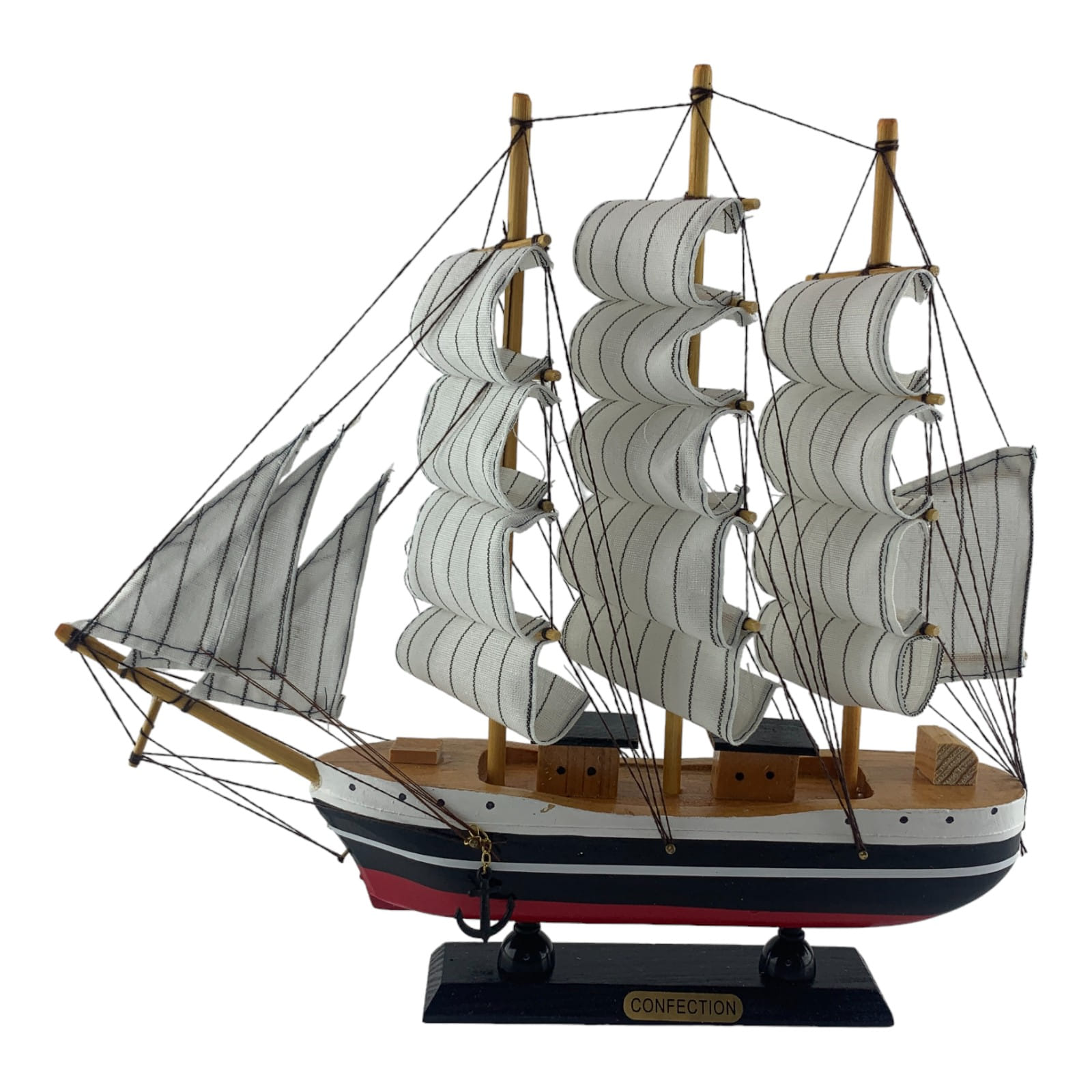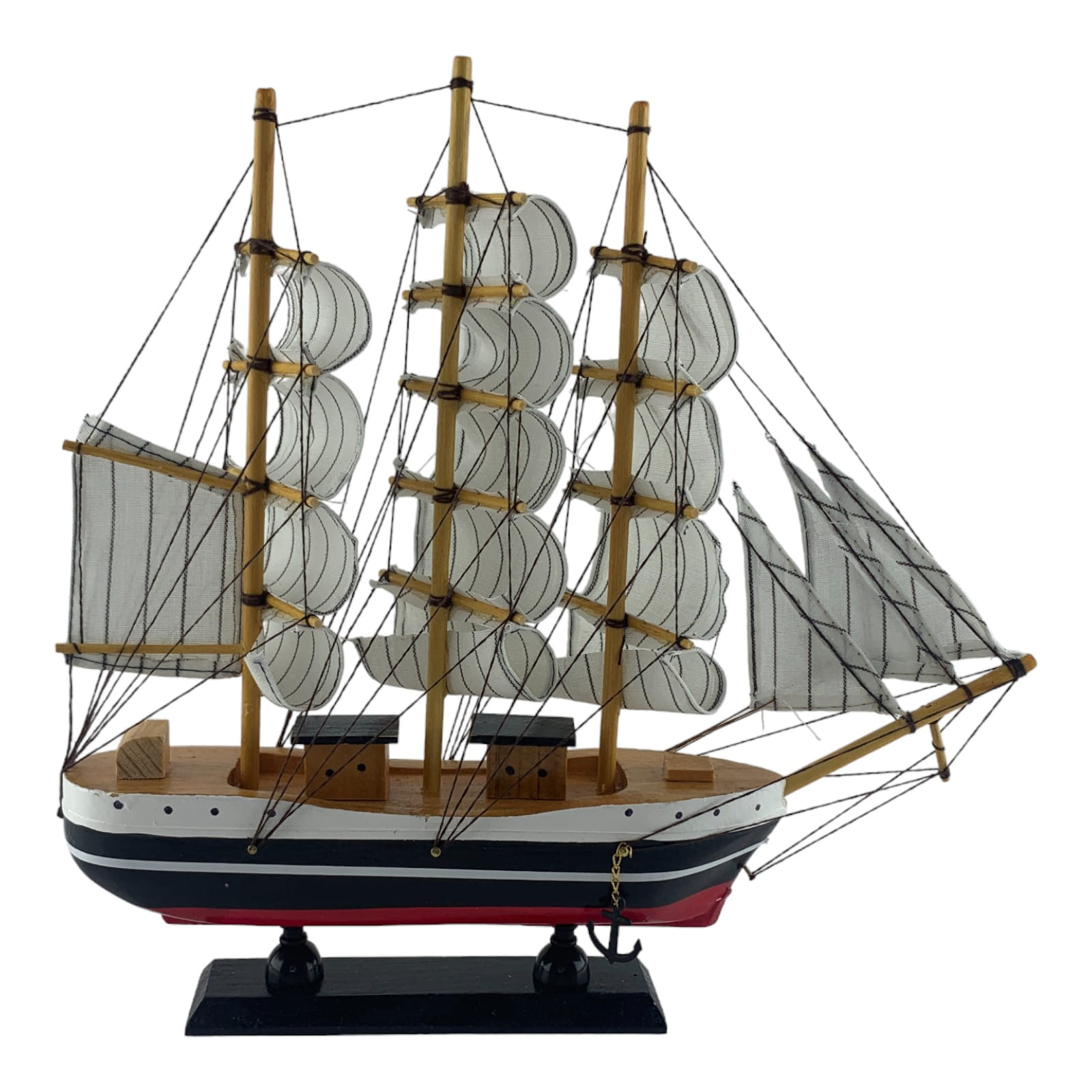 Деревянный парусник на подставке. Этот элегантный парусник - настоящий символ свободы и мечты о далеких морских путешествиях. Его цветовая гамма из бело-черно-красного цвета , со светлыми парусами призывает к новым горизонтам и приключениям. Парусник на подставке станет не только изысканным элементом вашего интерьера, но и напоминанием о бескрайних океанах и незабываемых моментах. Его компактные размеры делают его идеальным для размещения на столе, полке или в другом уголке вашего дома. Два якоря придают этой композиции дополнительный морской шарм и символизируют стабильность и верность своим идеалам. Этот парусник также может стать замечательным подарком для всех, кто разделяет страсть к морским темам и мечтает о приключениях на широких водах. Он символизирует свободу, мечты и бесконечные возможности. Погрузитесь в мир морской романтики с нашим парусником. Он будет напоминать вам о великих путешествиях и дарить вдохновение каждый день.