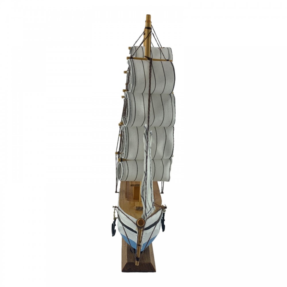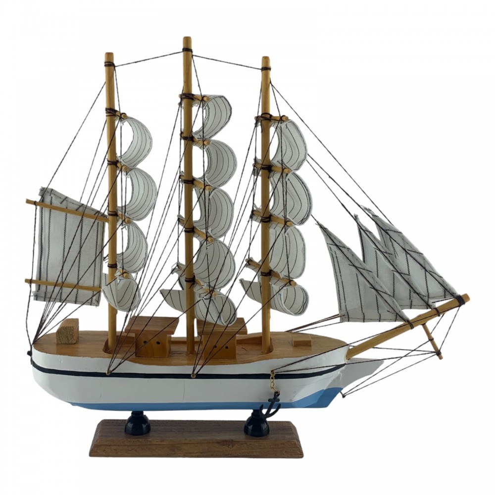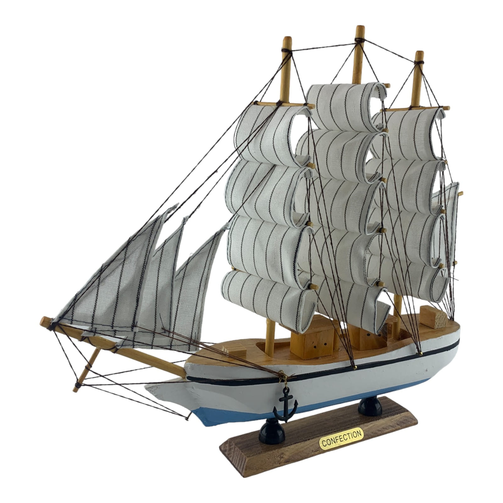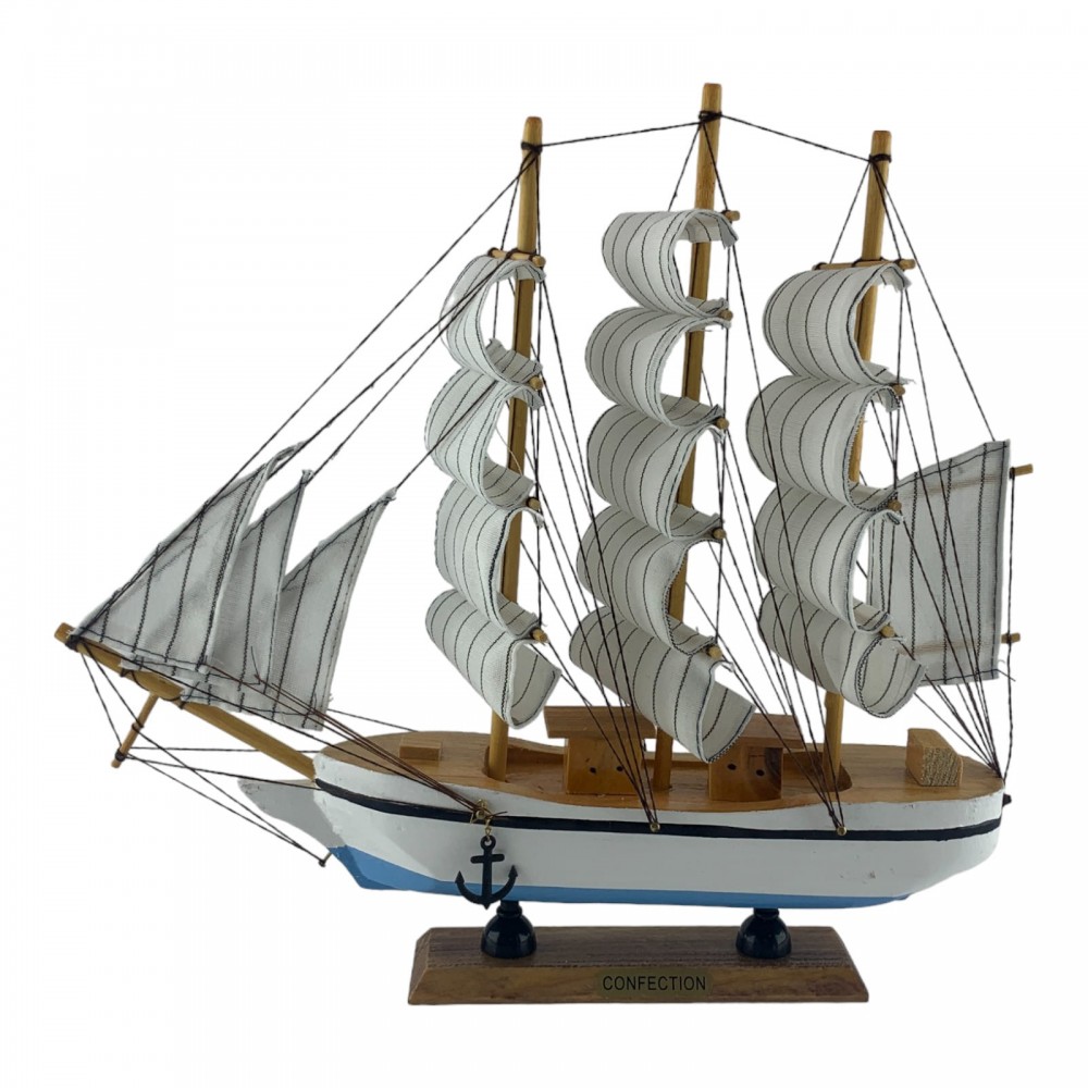 Деревянный парусник на подставке. Этот элегантный парусник - настоящий символ свободы и мечты о далеких морских путешествиях. Белого цвета с черной полосой и голубой снизу , со светлыми парусами призывает к новым горизонтам и приключениям. Парусник на подставке станет не только изысканным элементом вашего интерьера, но и напоминанием о бескрайних океанах и незабываемых моментах. Его компактные размеры делают его идеальным для размещения на столе, полке или в другом уголке вашего дома. Два якоря придают этой композиции дополнительный морской шарм и символизируют стабильность и верность своим идеалам. Этот парусник также может стать замечательным подарком для всех, кто разделяет страсть к морским темам и мечтает о приключениях на широких водах. Он символизирует свободу, мечты и бесконечные возможности. Погрузитесь в мир морской романтики с нашим парусником. Он будет напоминать вам о великих путешествиях и дарить вдохновение каждый день.