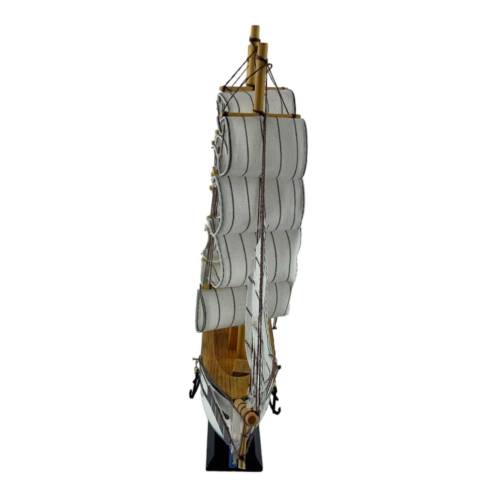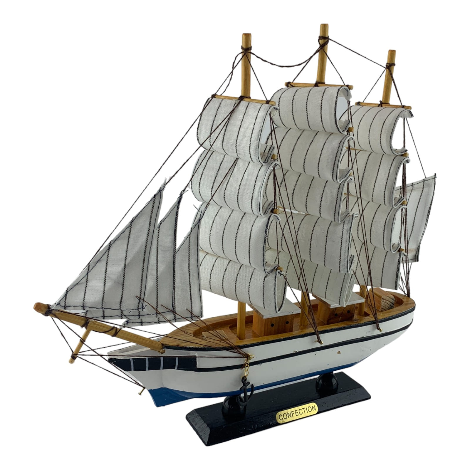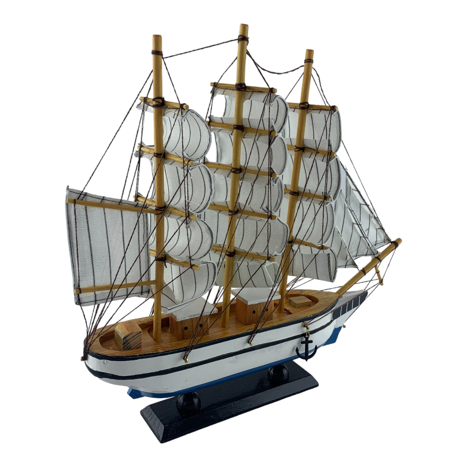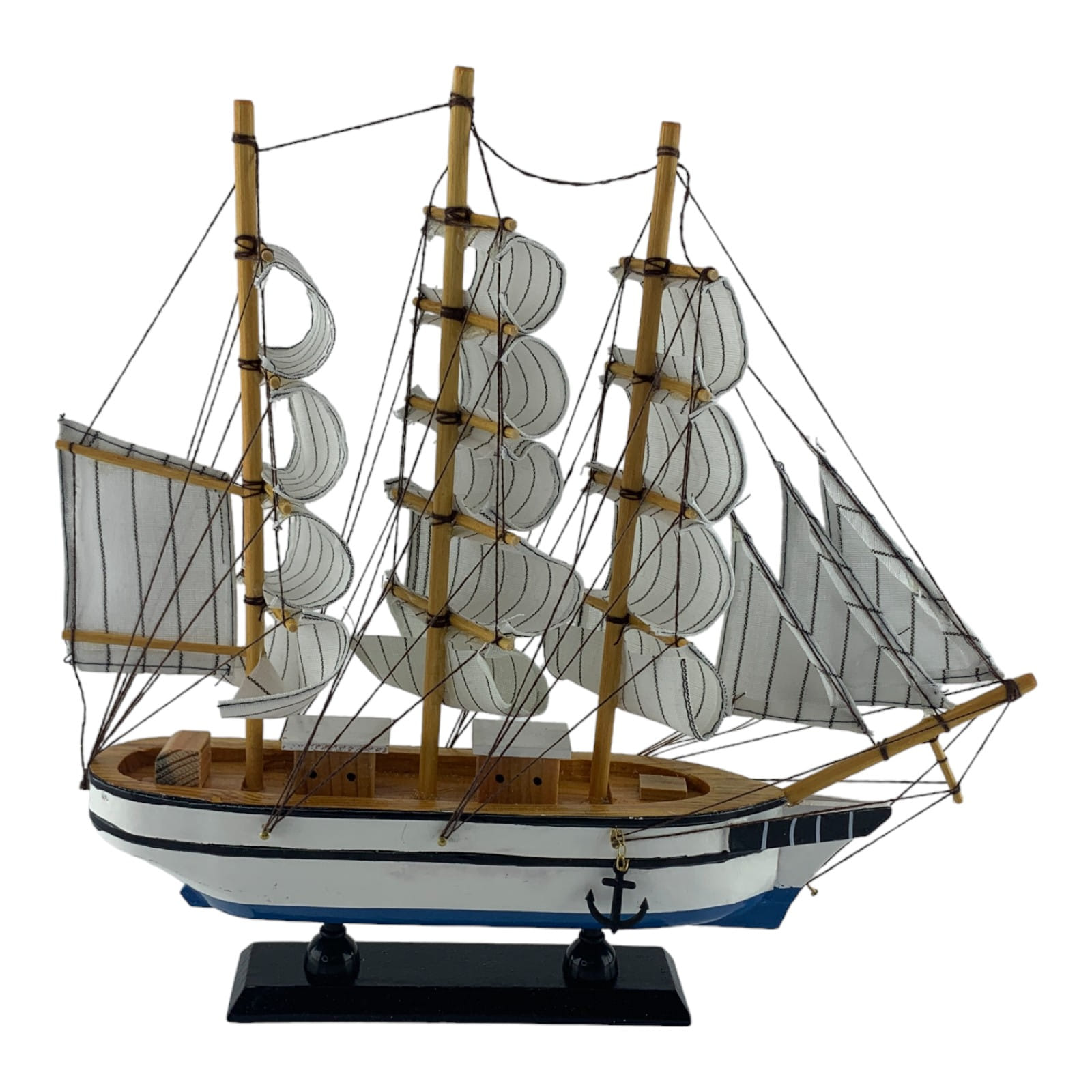 Деревянный парусник на подставке. Этот элегантный парусник - настоящий символ свободы и мечты о далеких морских путешествиях. Белого цвета с черной полосой и голубой снизу , со светлыми парусами призывает к новым горизонтам и приключениям. Парусник на подставке станет не только изысканным элементом вашего интерьера, но и напоминанием о бескрайних океанах и незабываемых моментах. Его компактные размеры делают его идеальным для размещения на столе, полке или в другом уголке вашего дома. Два якоря придают этой композиции дополнительный морской шарм и символизируют стабильность и верность своим идеалам. Этот парусник также может стать замечательным подарком для всех, кто разделяет страсть к морским темам и мечтает о приключениях на широких водах. Он символизирует свободу, мечты и бесконечные возможности. Погрузитесь в мир морской романтики с нашим парусником. Он будет напоминать вам о великих путешествиях и дарить вдохновение каждый день.