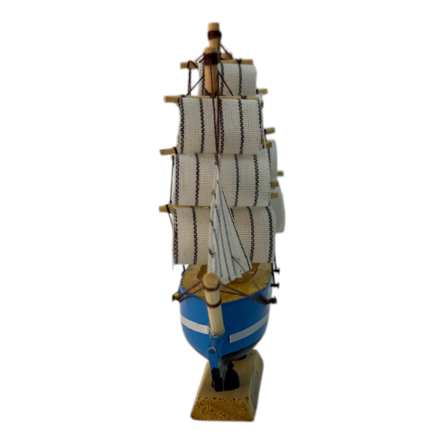 Эта очаровательная настольная модель парусника "Морская мечта" принесет в ваш дом дух морских приключений и романтики дальних странствий. Выполненная из дерева и ткани, она с любовью передает атмосферу открытых морей и летнего бриза. Компактный парусник украшает любую полку или рабочий стол, добавляя уюта и немного мечтательного настроения. Поставленная на аккуратную подставку, модель выглядит стильно и привлекательно. Это отличный подарок для любителей морей, путешествий или просто красивых сувениров, который напомнит о свободе и широте горизонтов.