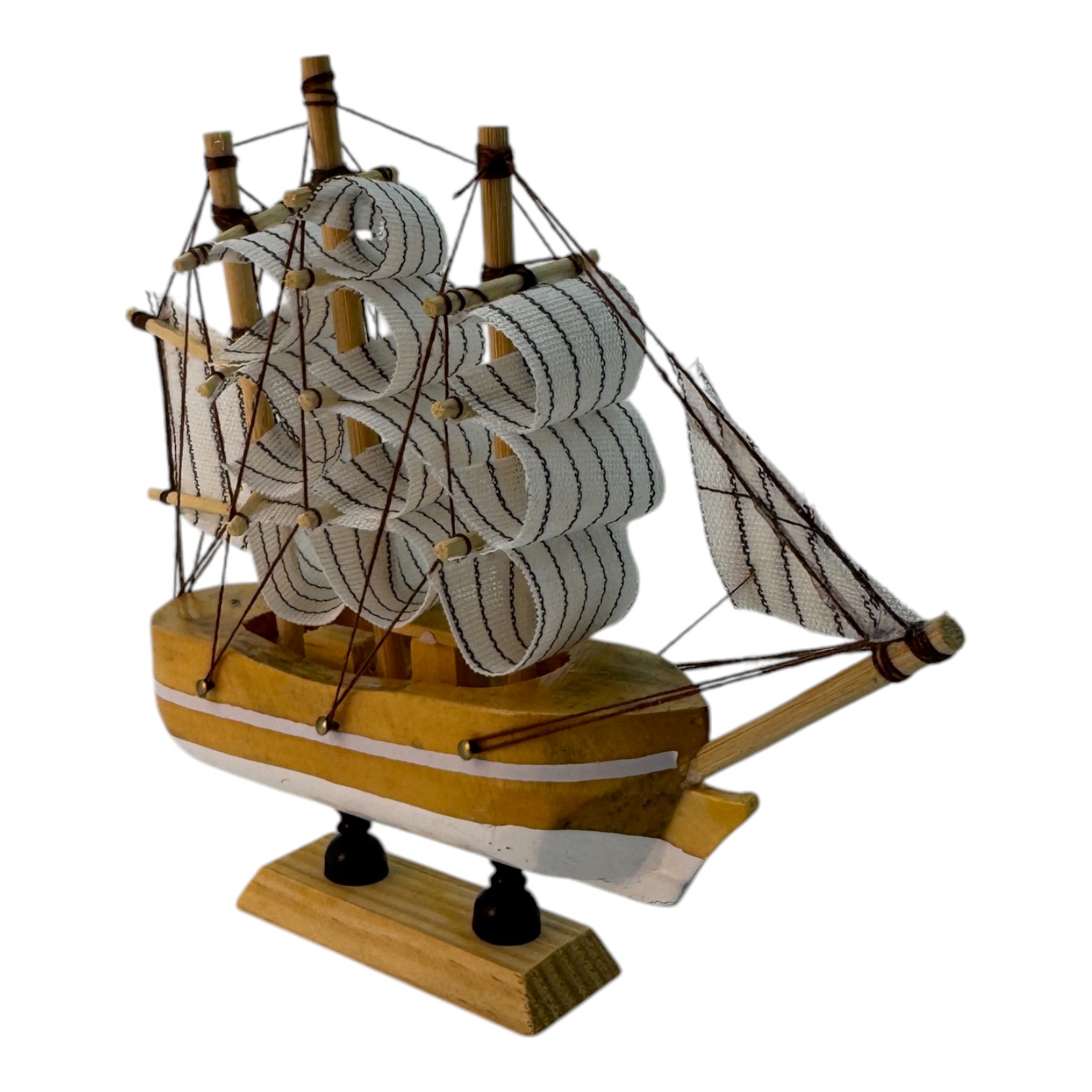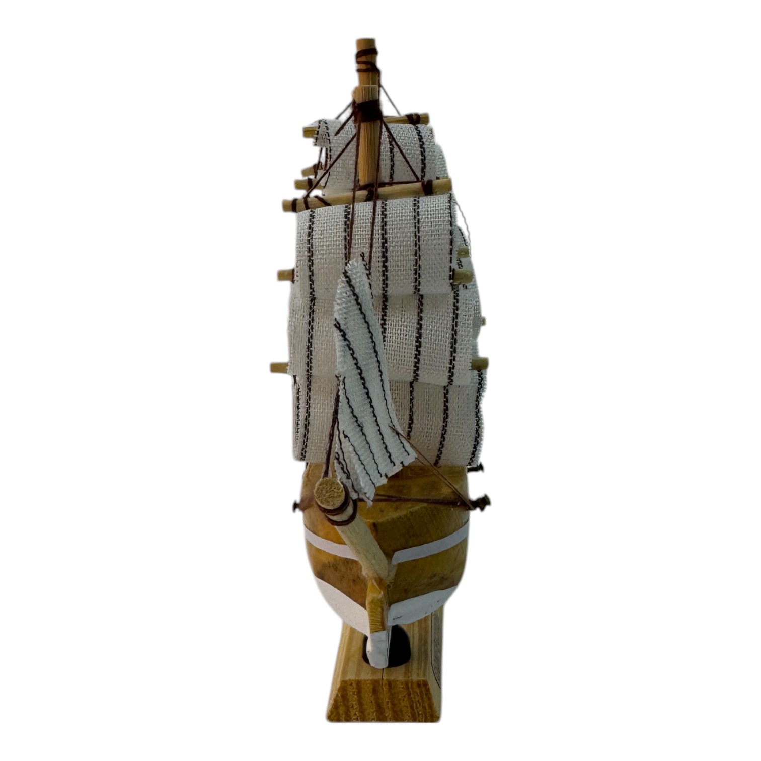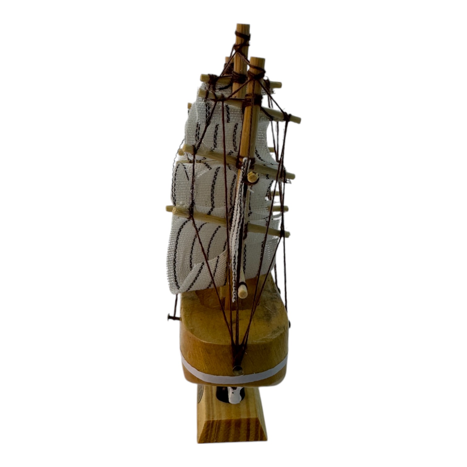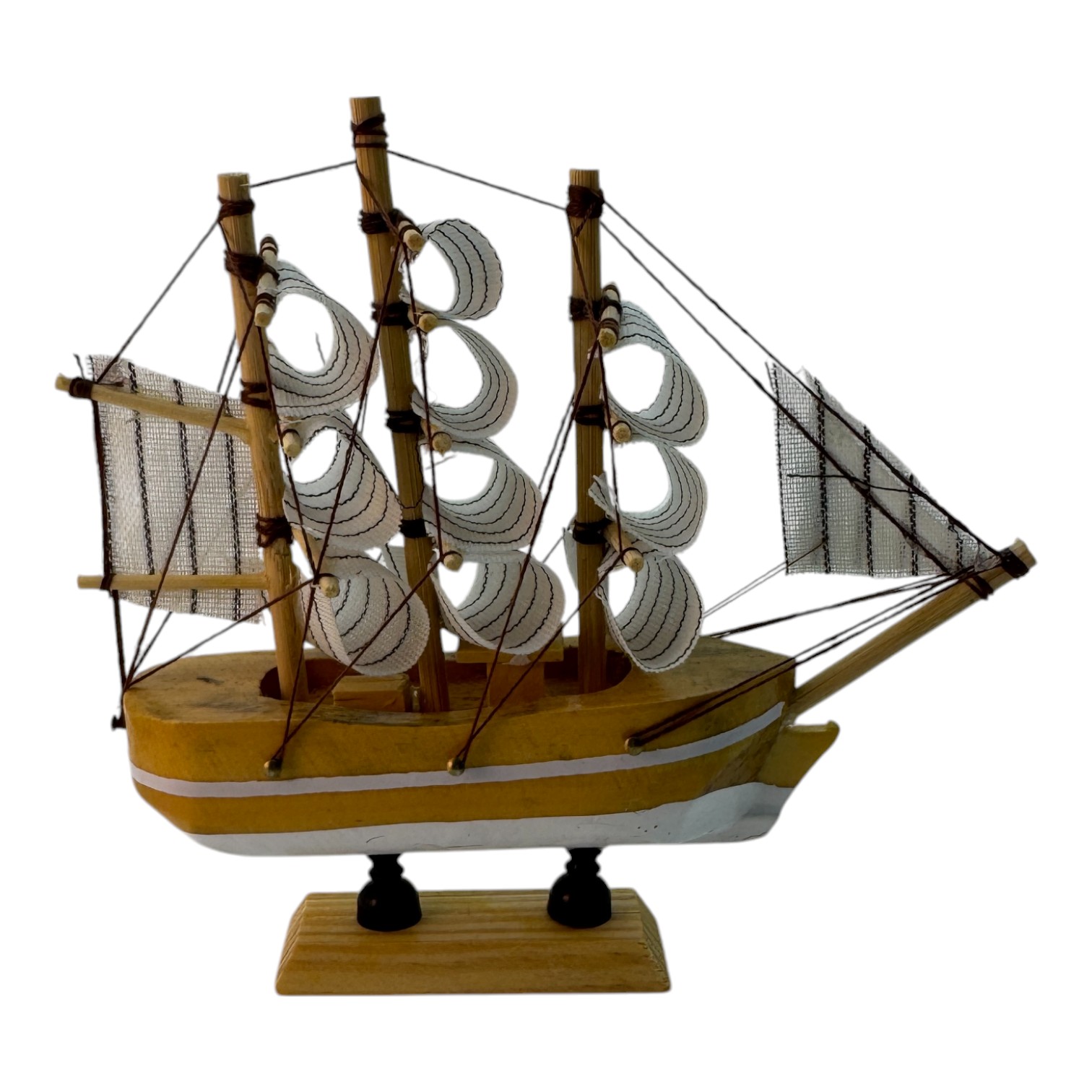 Эта очаровательная настольная модель парусника "Морская мечта" принесет в ваш дом дух морских приключений и романтики дальних странствий. Выполненная из дерева и ткани, она с любовью передает атмосферу открытых морей и летнего бриза. Компактный парусник украшает любую полку или рабочий стол, добавляя уюта и немного мечтательного настроения. Поставленная на аккуратную подставку, модель выглядит стильно и привлекательно. Это отличный подарок для любителей морей, путешествий или просто красивых сувениров, который напомнит о свободе и широте горизонтов.