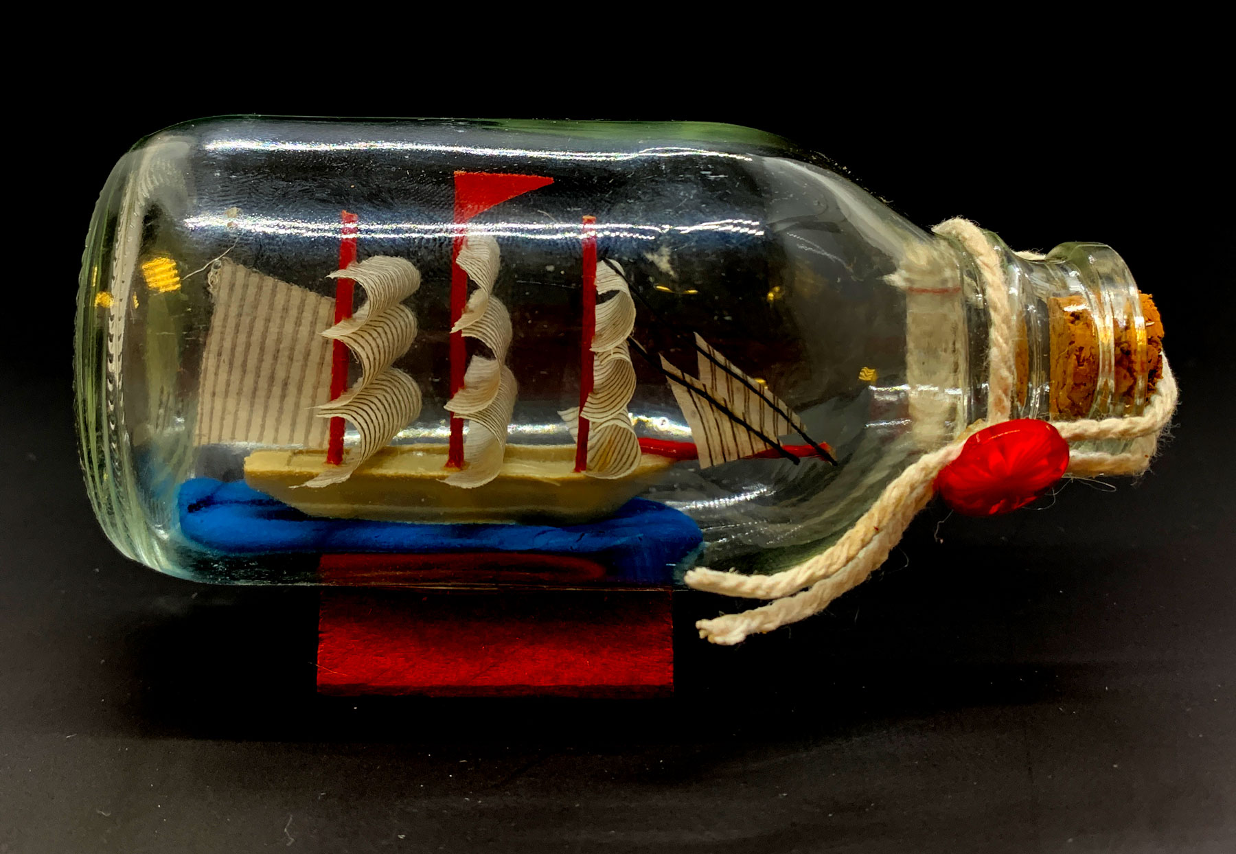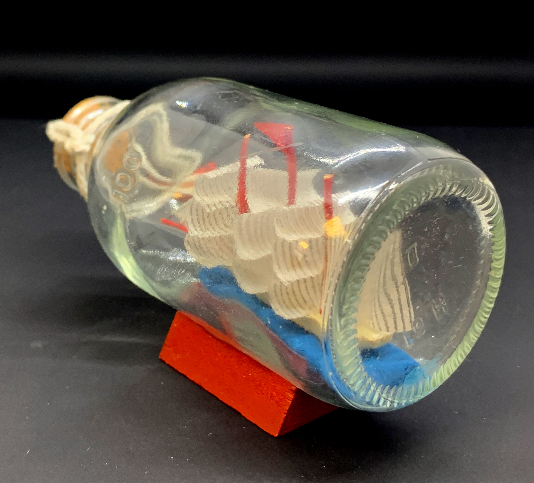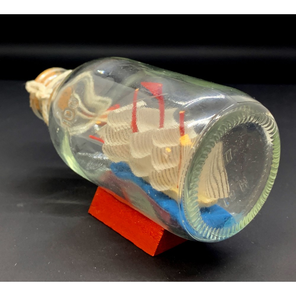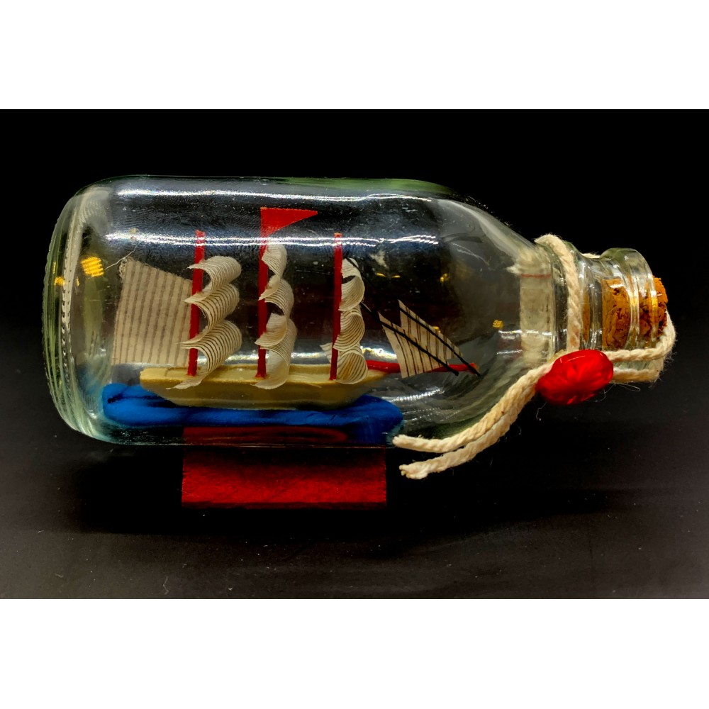 Бутылка имеет размеры 115х50 мм, и внутри нее умело размещен корабль, созданный с невероятной детализацией. Корабль выполнен с мастерством и вниманием к каждой детали. Он привлекает внимание и восхищение своим уникальным и прекрасным видом.