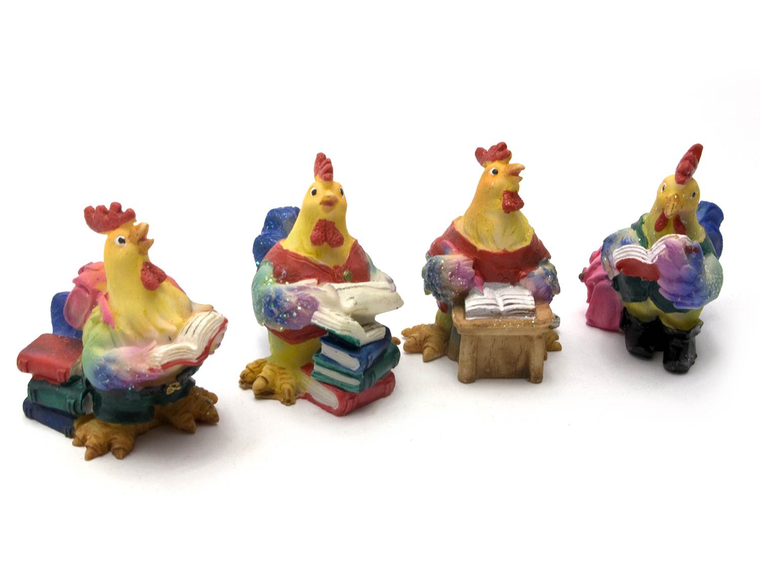 Петух с книгой полимер (4 шт/уп)(5х4.5х4 см) код 29181