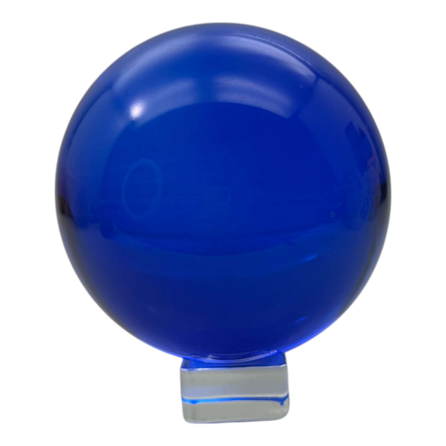 Этот синий хрустальный шар стильный и универсальный элемент декора, который добавит утончённости вашему пространству. Его гладкая поверхность и ясность материала делают его настоящим произведением искусства.