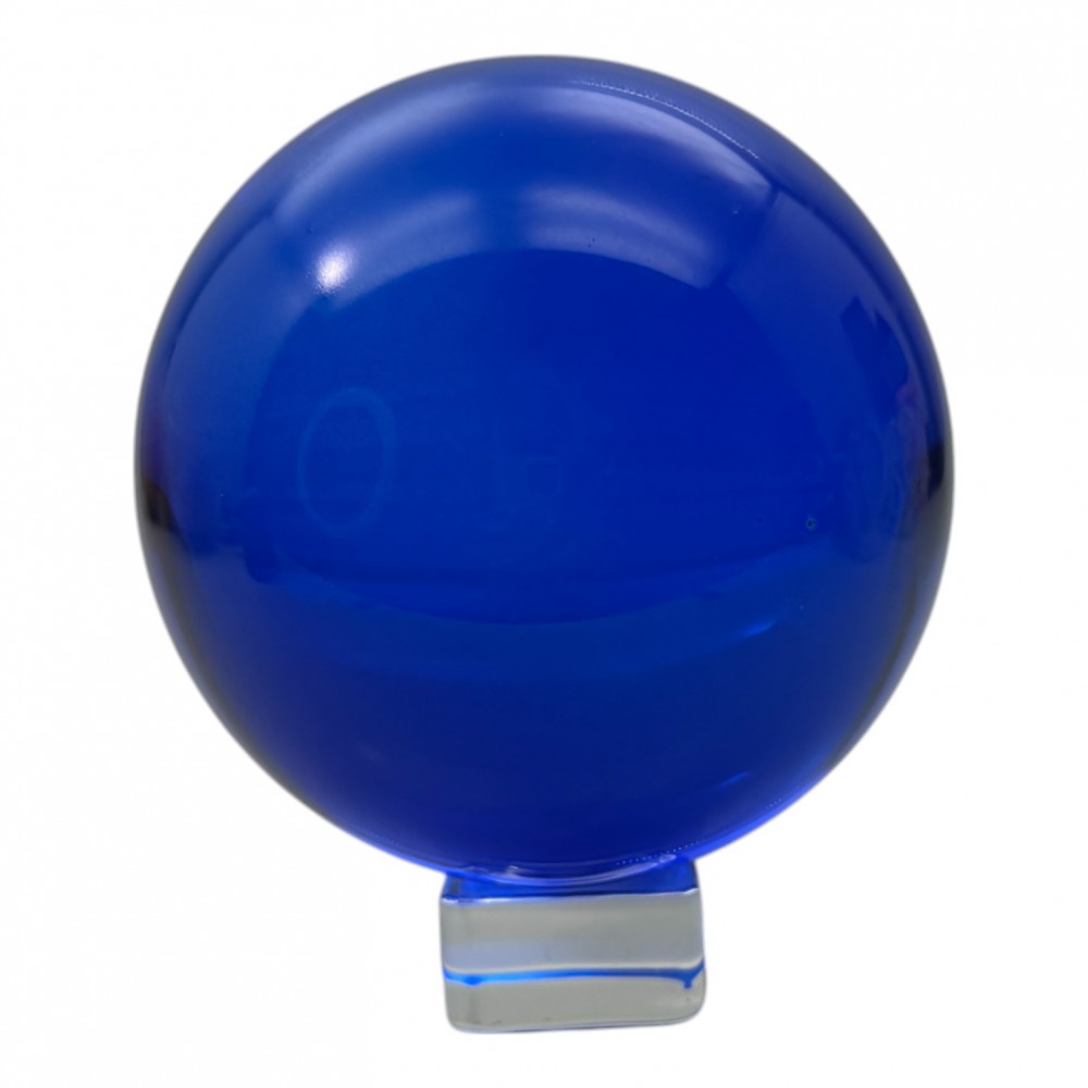 Этот синий хрустальный шар стильный и универсальный элемент декора, который добавит утончённости вашему пространству. Его гладкая поверхность и ясность материала делают его настоящим произведением искусства.
