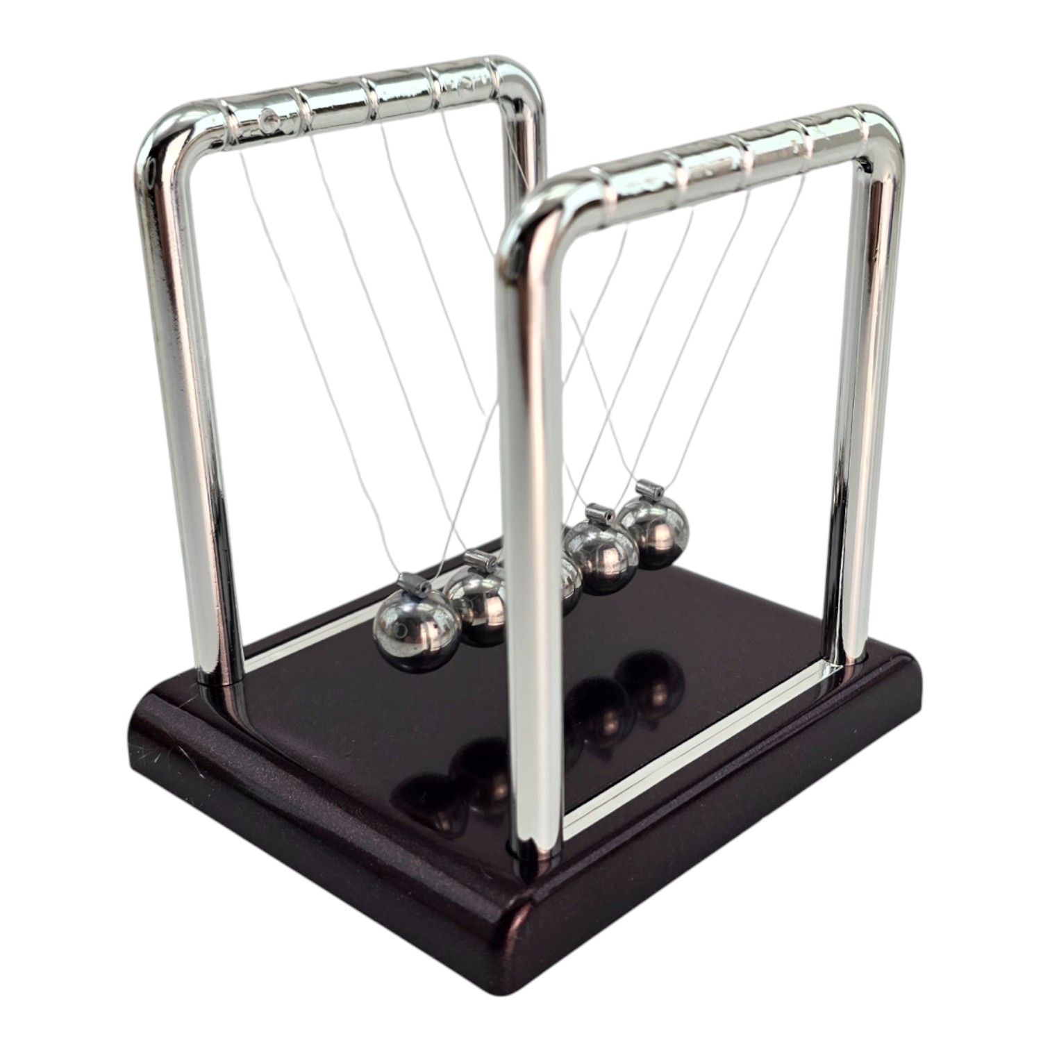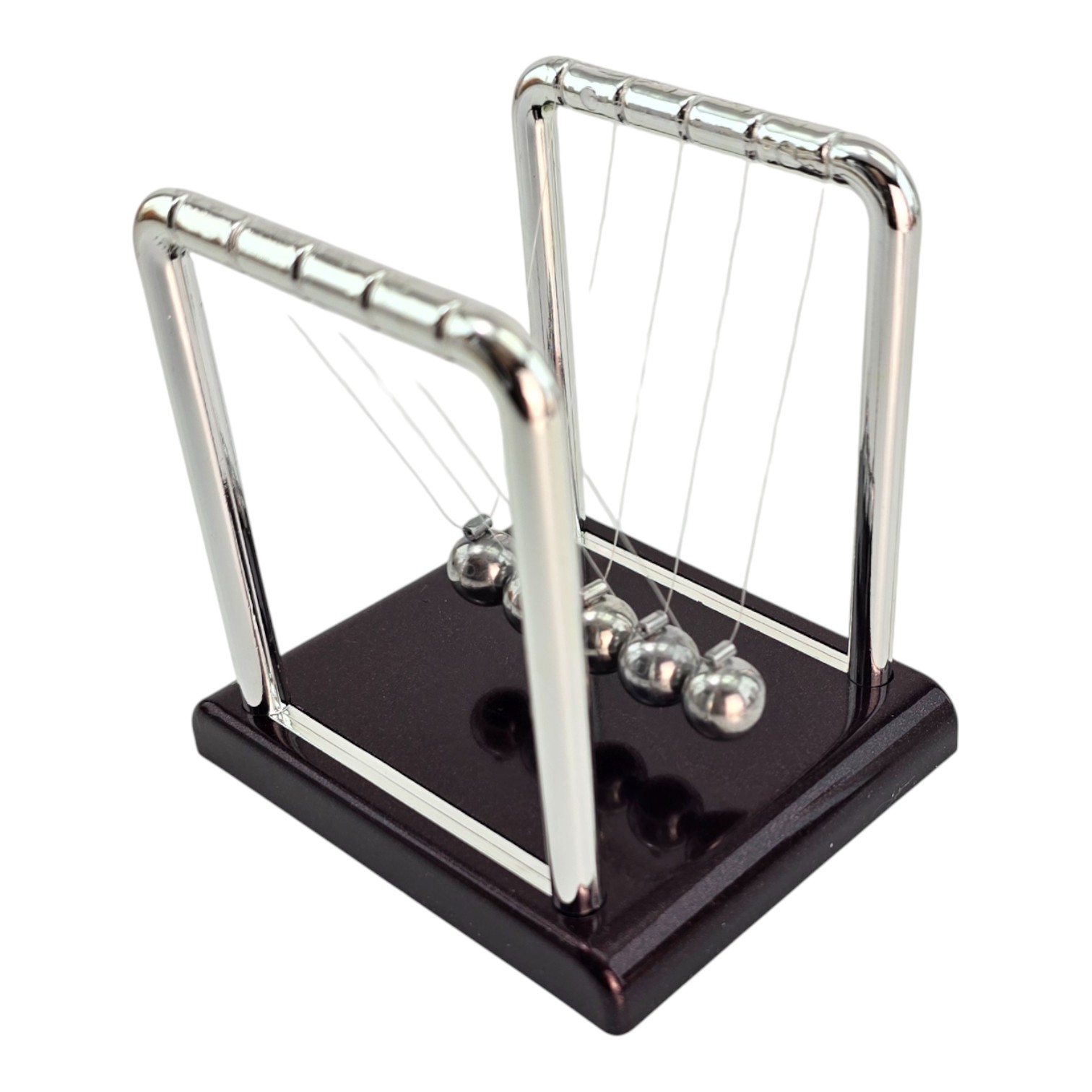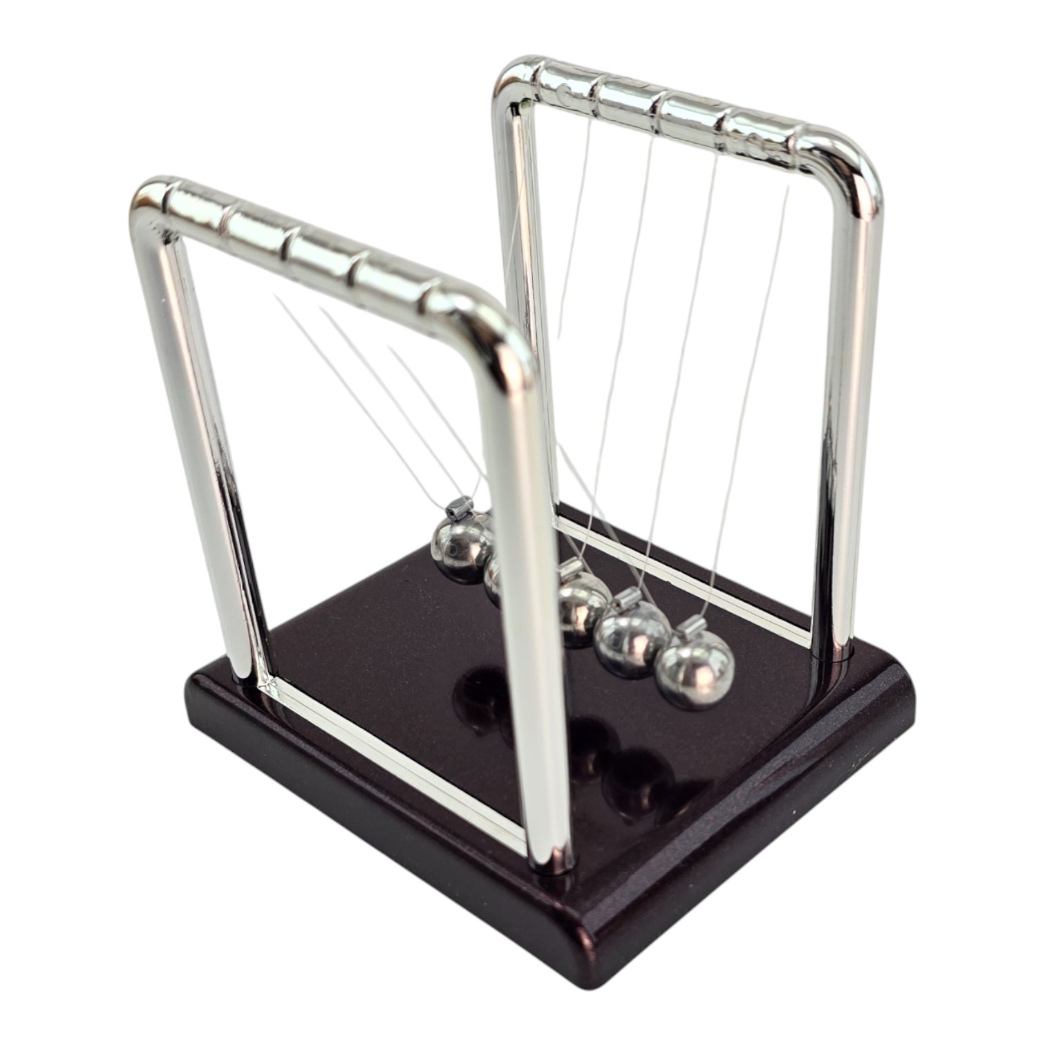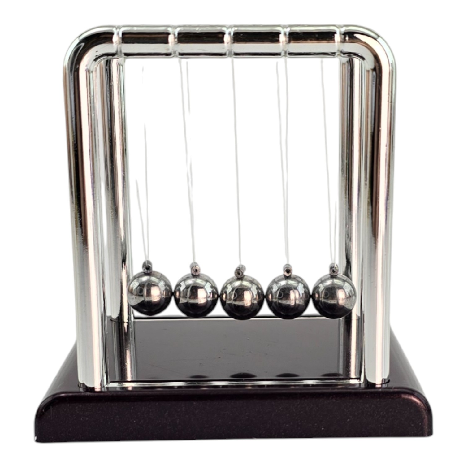 Компактный настольный маятник Ньютона с пятью металлическими шариками - классическая офисная игрушка, наглядно показывающая законы сохранения энергии и импульса. Стильное тёмное основание и хромированная рамка хорошо смотрятся на рабочем столе и создают ощущение движения и динамики. Отличный небольшой подарок коллеге, другу или школьнику, который интересуется физикой.