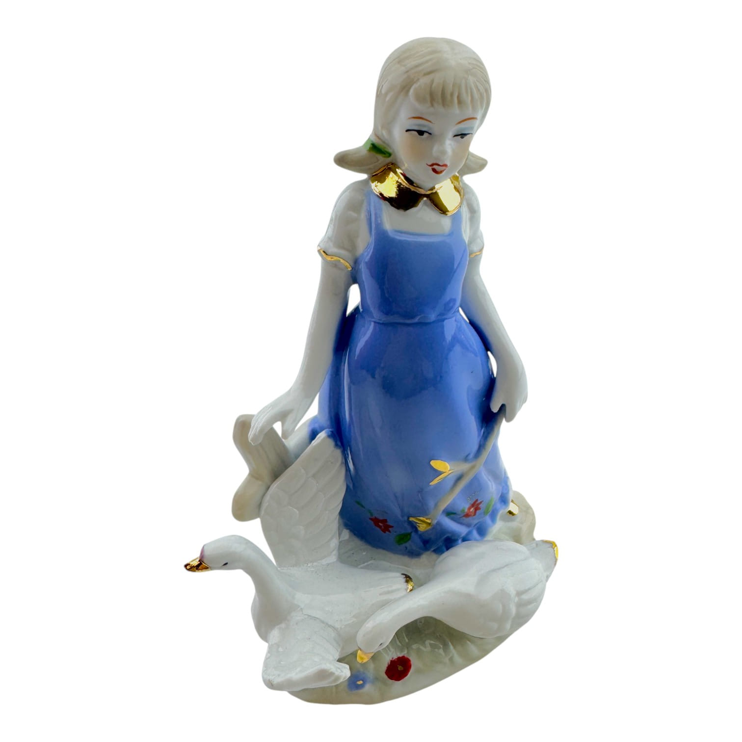 Элегантная фарфоровая статуэтка «Девушка с лебедями» станет изысканным украшением интерьера или прекрасным подарком коллекционеру. Девушка в синем платье окружена тремя грациозными лебедями, а элементы декора, включая цветы и клювы птиц, украшены золотистой росписью. Тончайшая ручная проработка деталей придаёт изделию особую утонченность и шарм.
