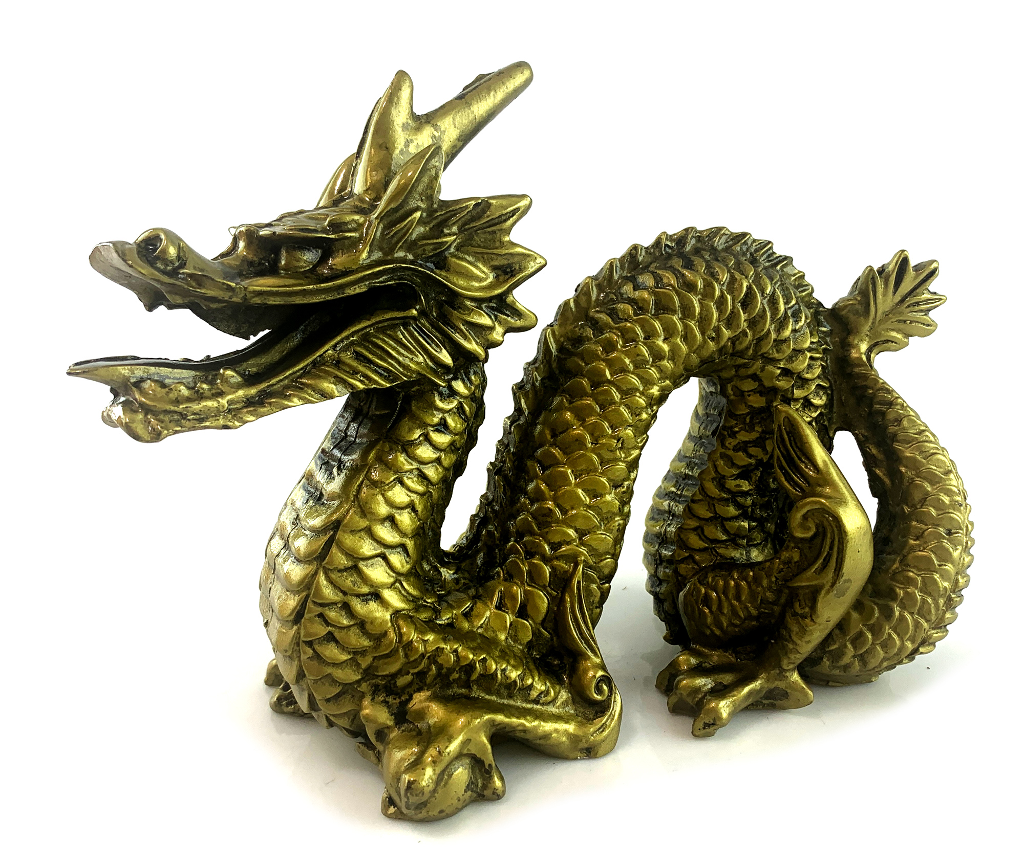 Дракон из полимера в бронзовом цвете – великолепное произведение, приносящее в ваш дом дух древности и силы. Выразительные размеры статуэтки подчеркивают могущественность и величие этого древнего существа.