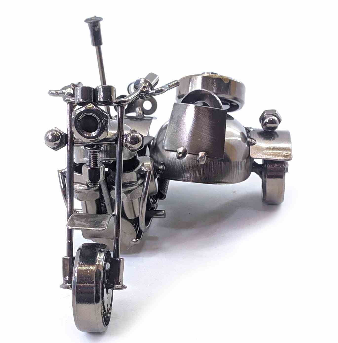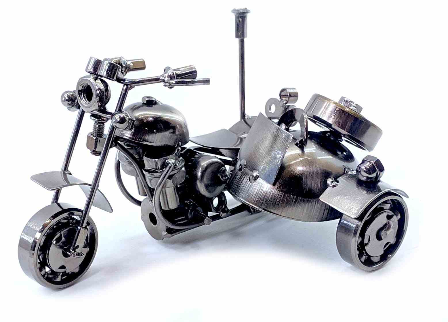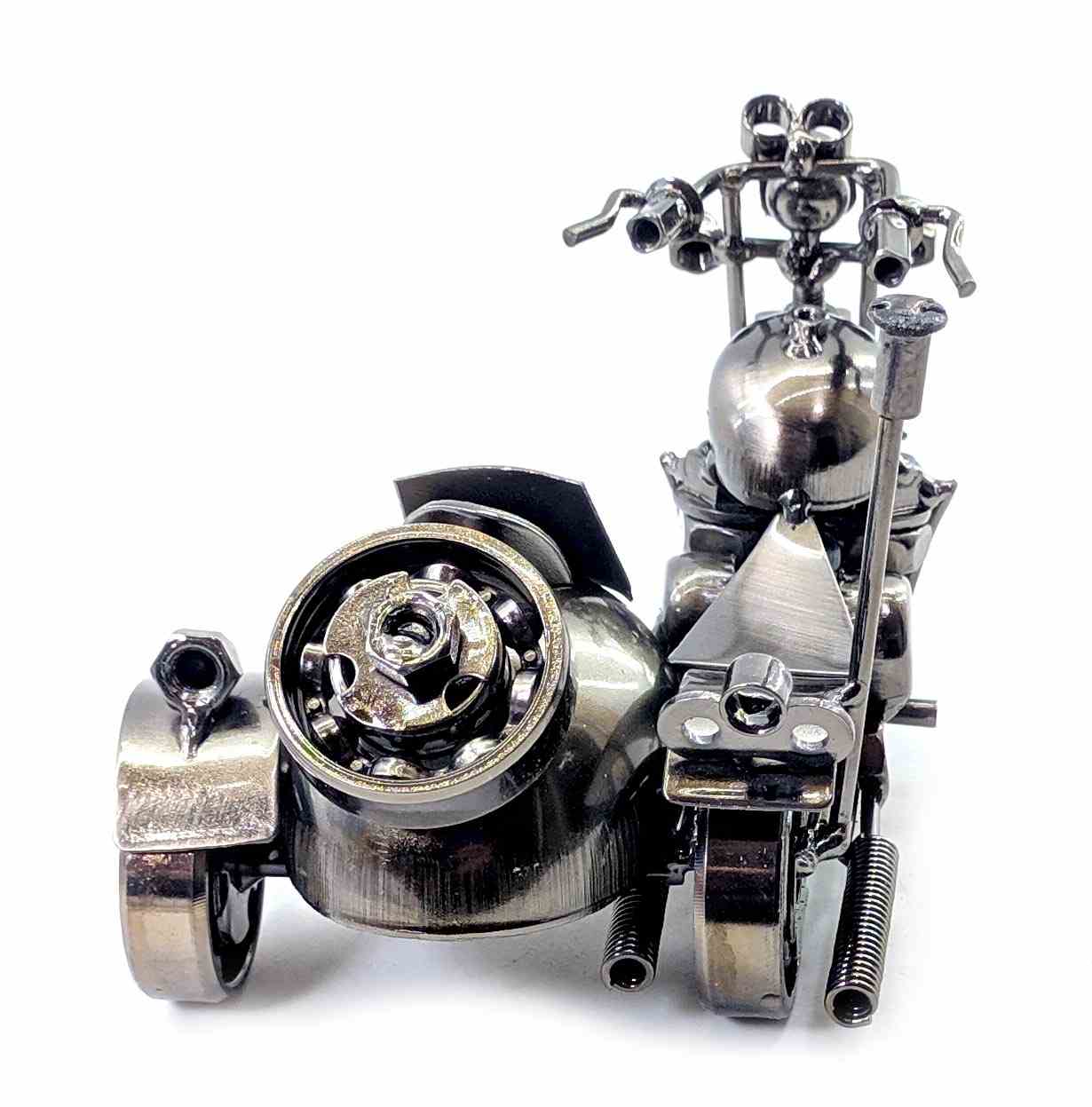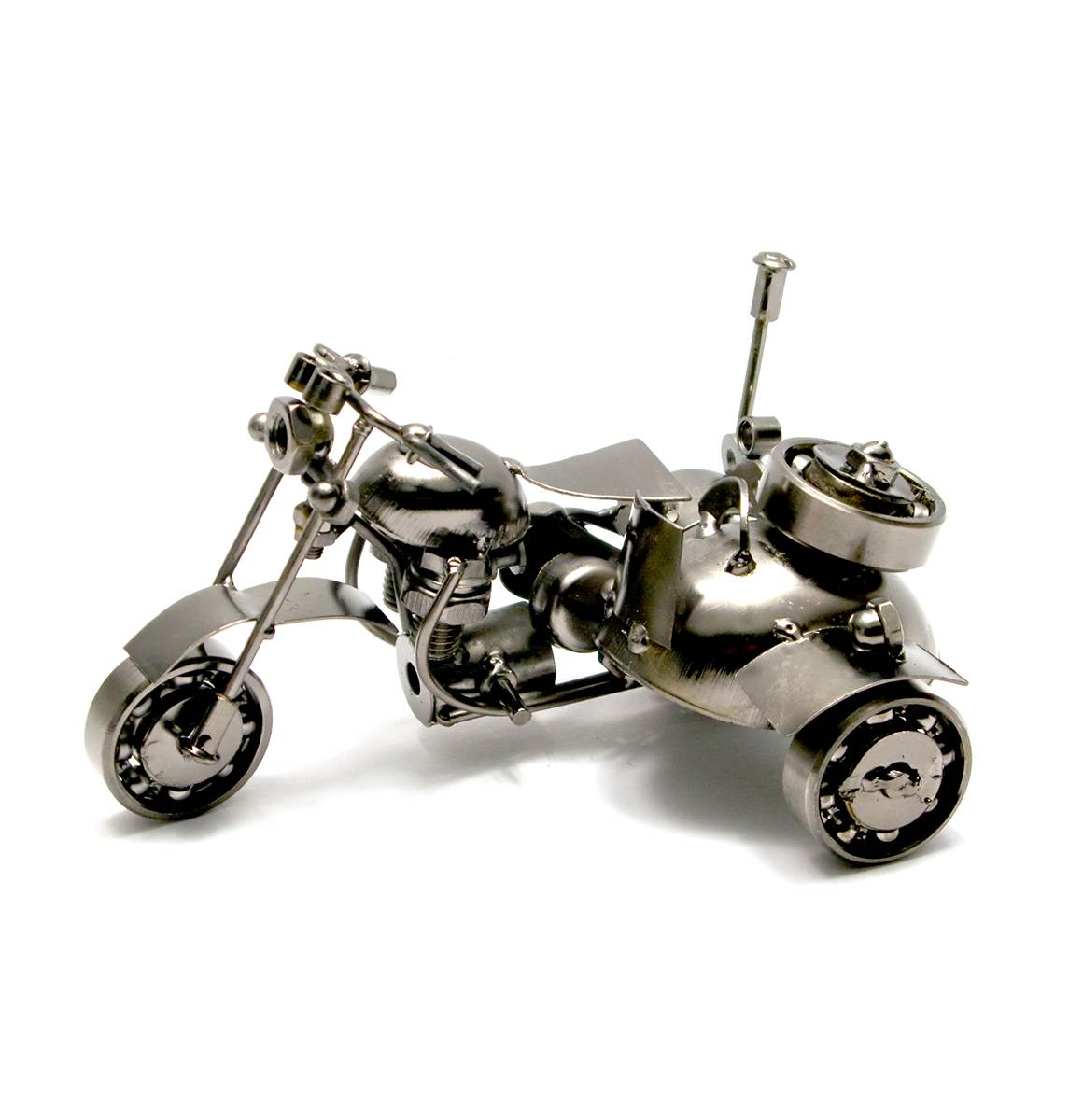 Статуэтка мотоцикла с коляской "Байка" из металла выполнена в стиле ТехноАрт