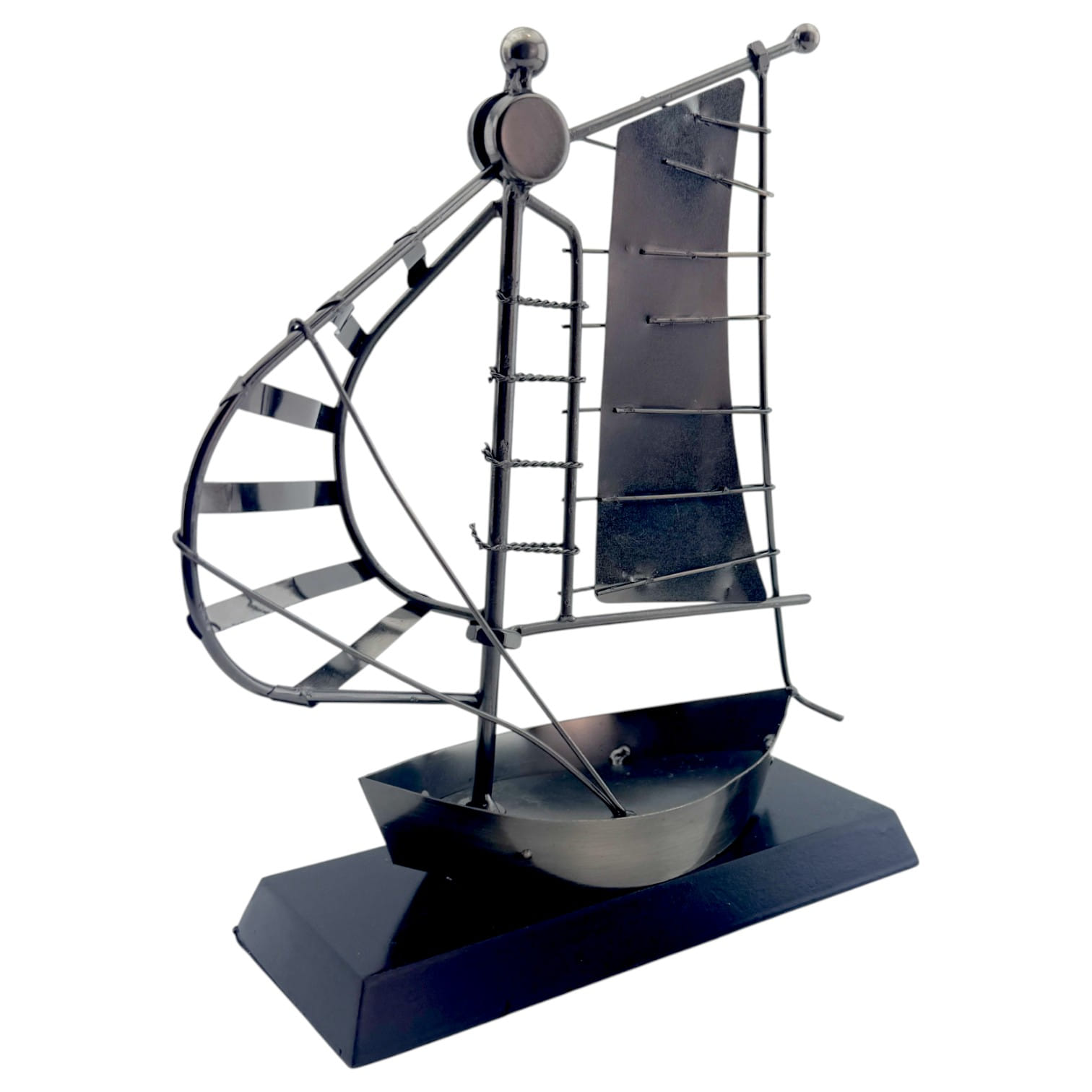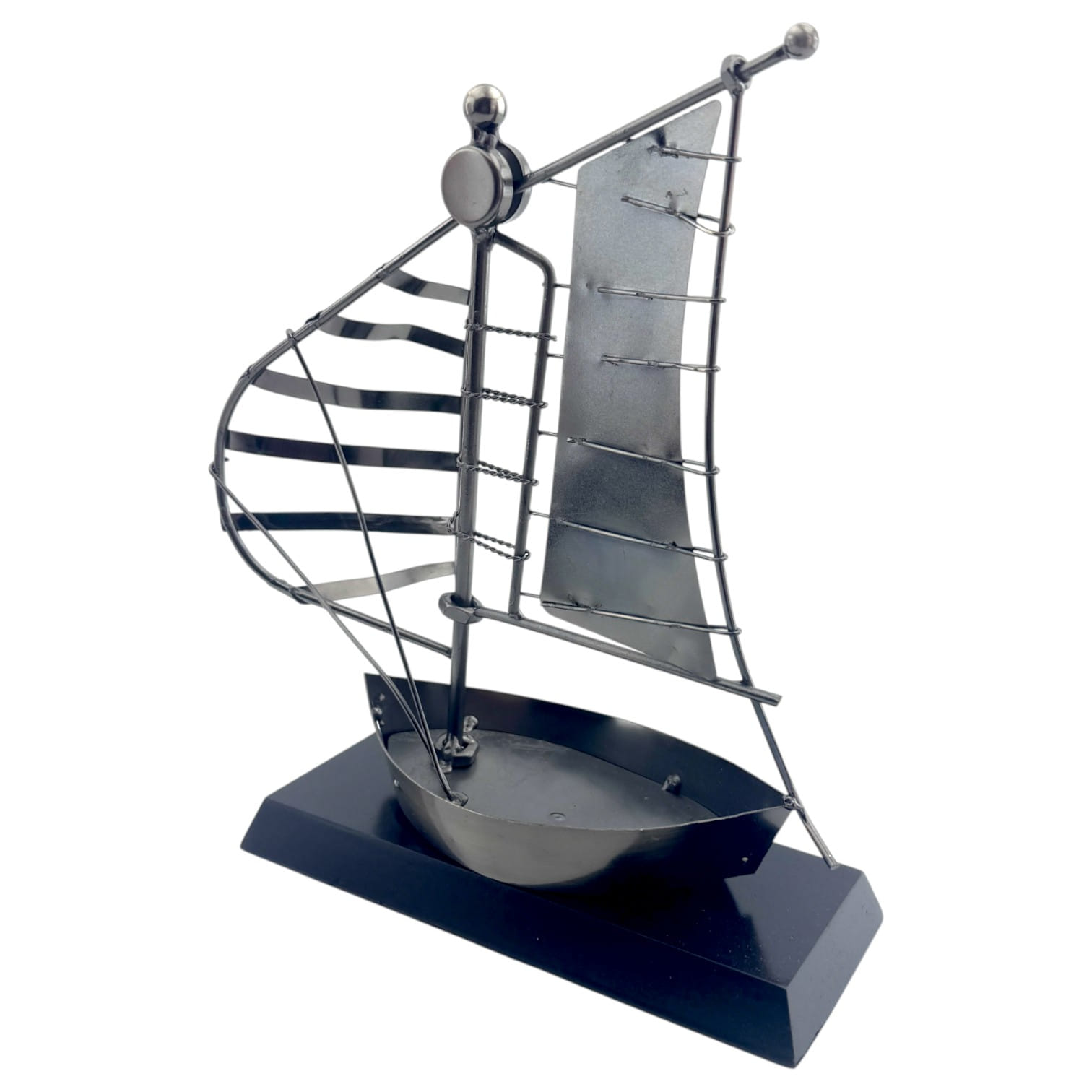 Техно-арт "Парусник" — необычное декоративное изделие, сочетающее эстетику морской тематики с индустриальным стилем. Выполнен в техно-арте: парусник собран из металлических деталей, имитирующих механизмы, шестерни и элементы конструктора.