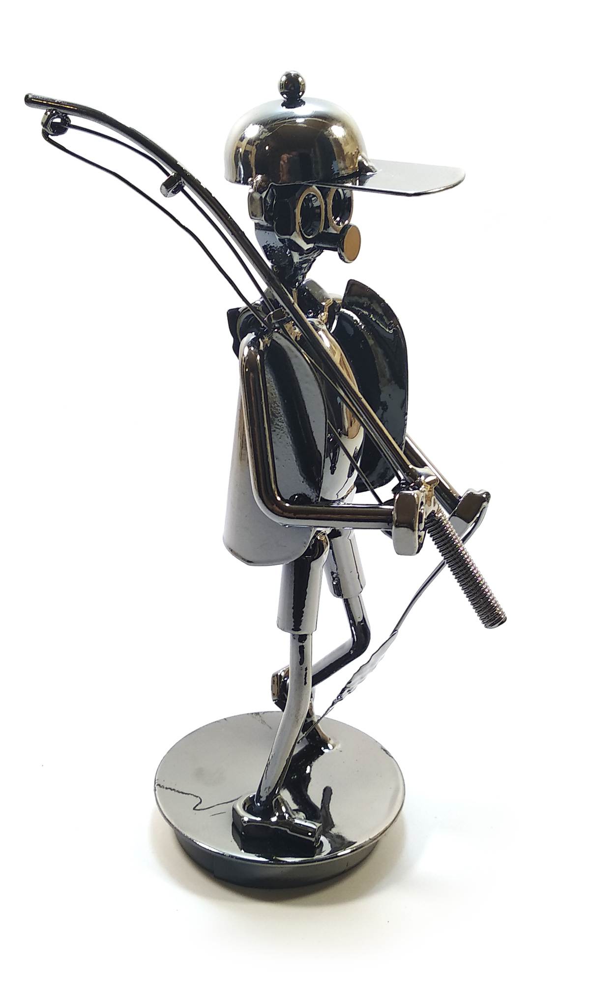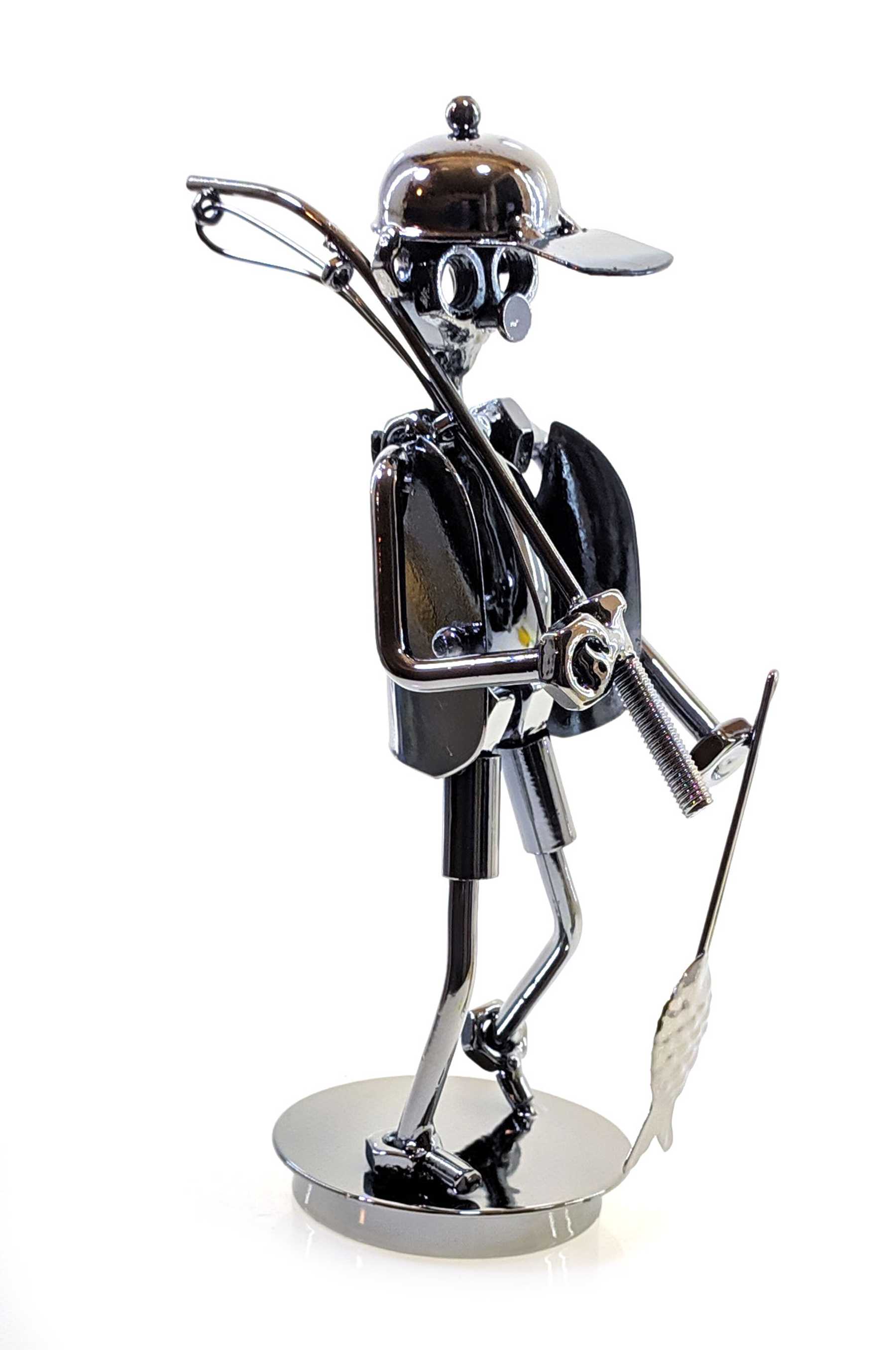 Статуэтка в виде рыбака с удочкой и рыбой, выполнена стиле техно-арт