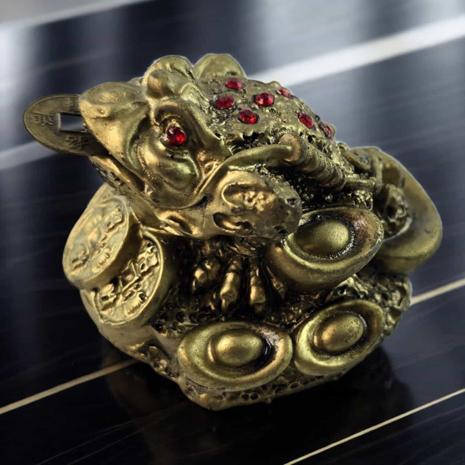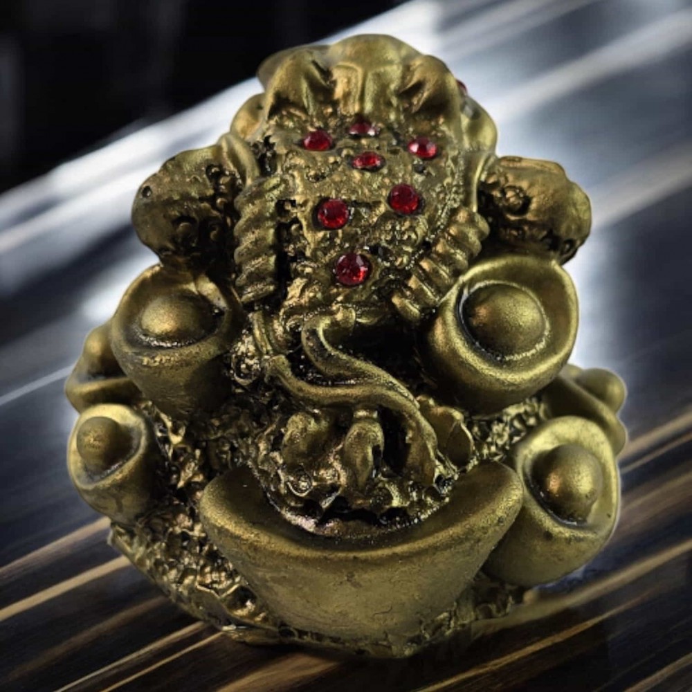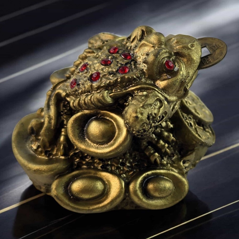 Эта фигурка жабы часто используется как талисман для привлечения удачи в бизнесе и финансах. Рекомендуется размещать её в рабочей зоне или возле входа, с монетой, направленной в сторону помещения, чтобы привлекать энергию богатства и процветания.