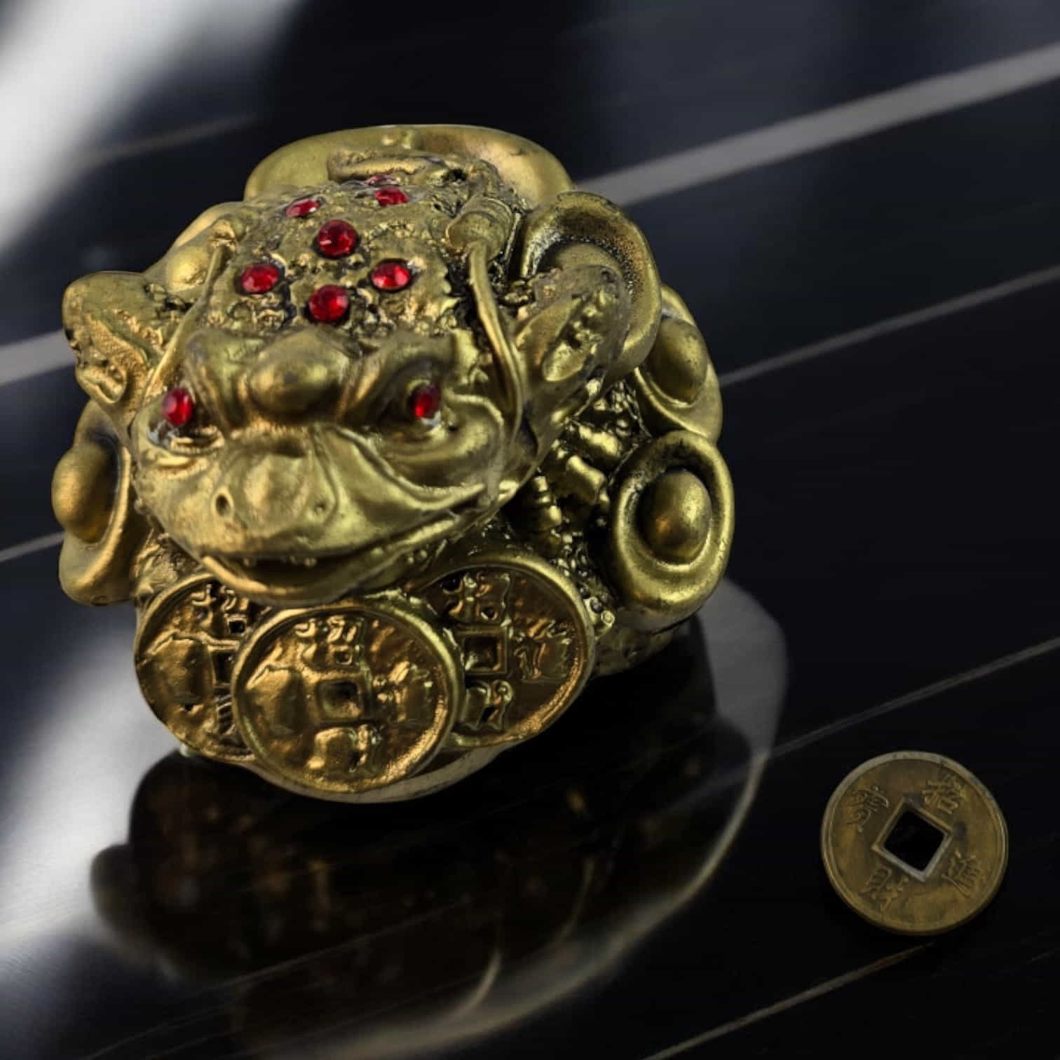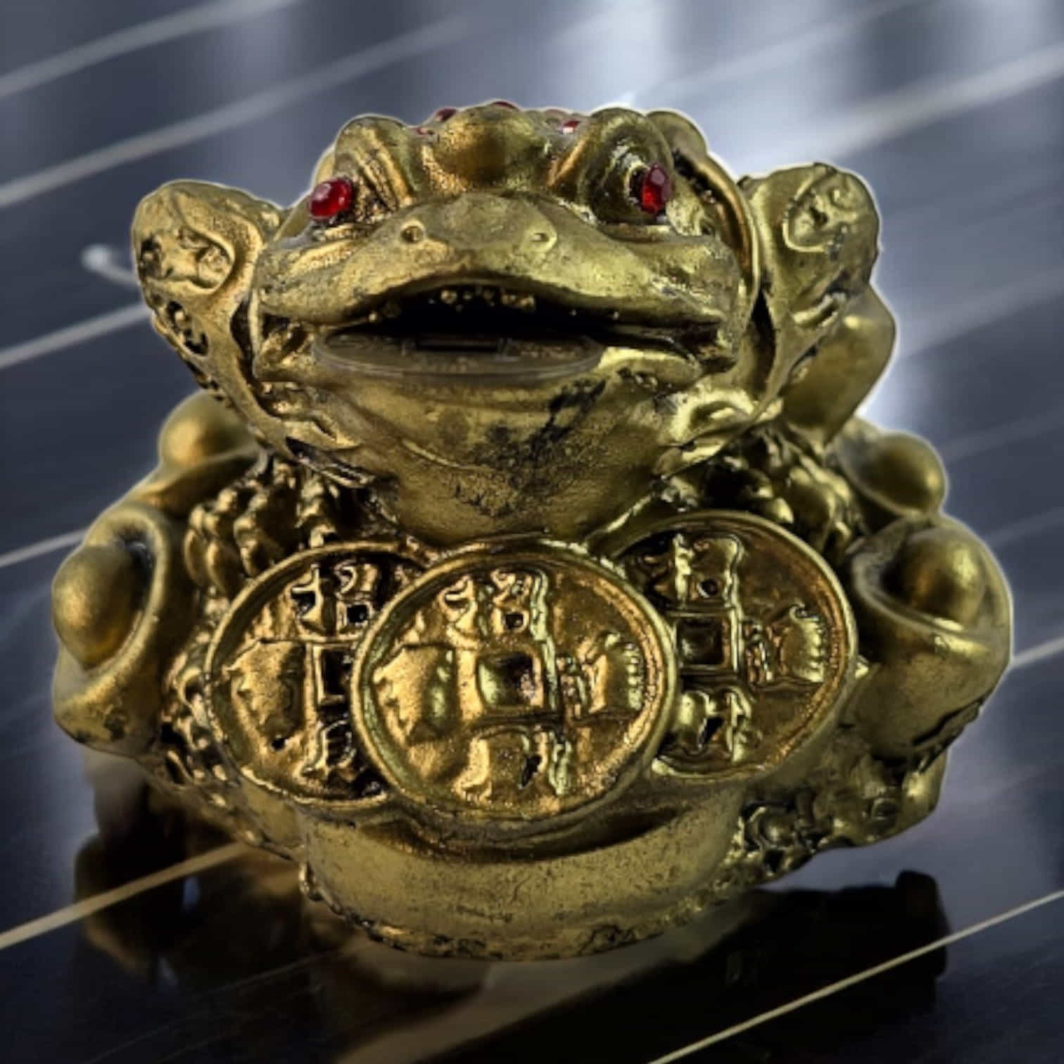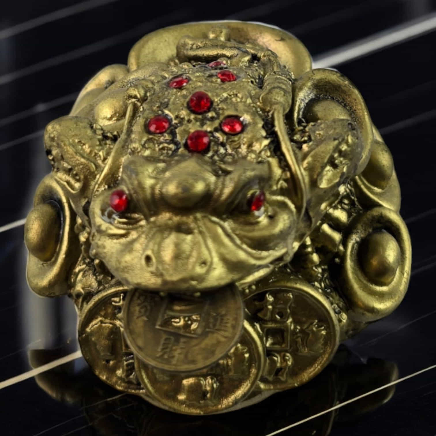 Эта фигурка жабы часто используется как талисман для привлечения удачи в бизнесе и финансах. Рекомендуется размещать её в рабочей зоне или возле входа, с монетой, направленной в сторону помещения, чтобы привлекать энергию богатства и процветания.