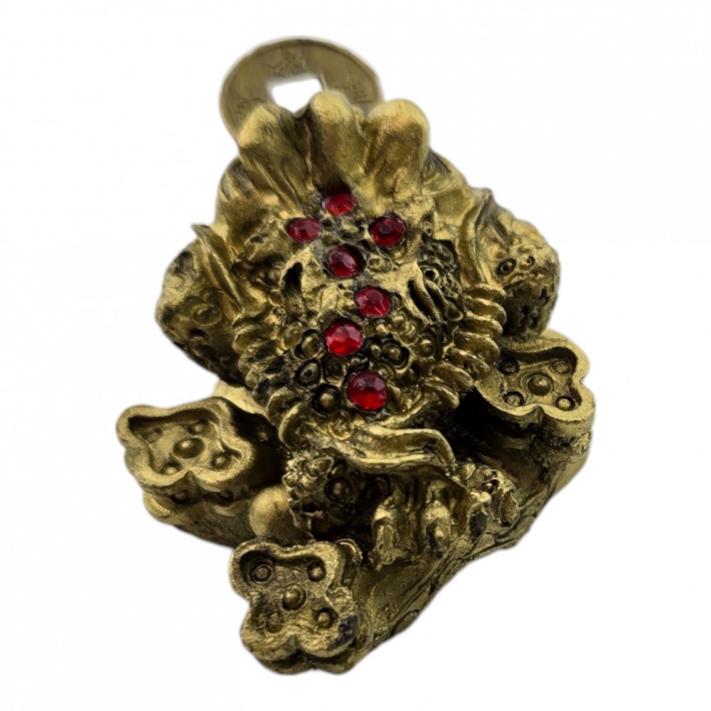 Маленькая, но притягательная статуэтка, изображающая жабу богатства, удерживающую монету во рту. Эта статуэтка изготовлена из полимерного материала с бронзовым покрытием, что придаёт ей винтажный и элегантный вид. Является символом финансового процветания и удачи, идеально подходит для размещения на рабочем столе или в офисе для привлечения благополучия. Красные глаза жабы придают ей загадочный и величественный вид, усиливая её магические свойства.