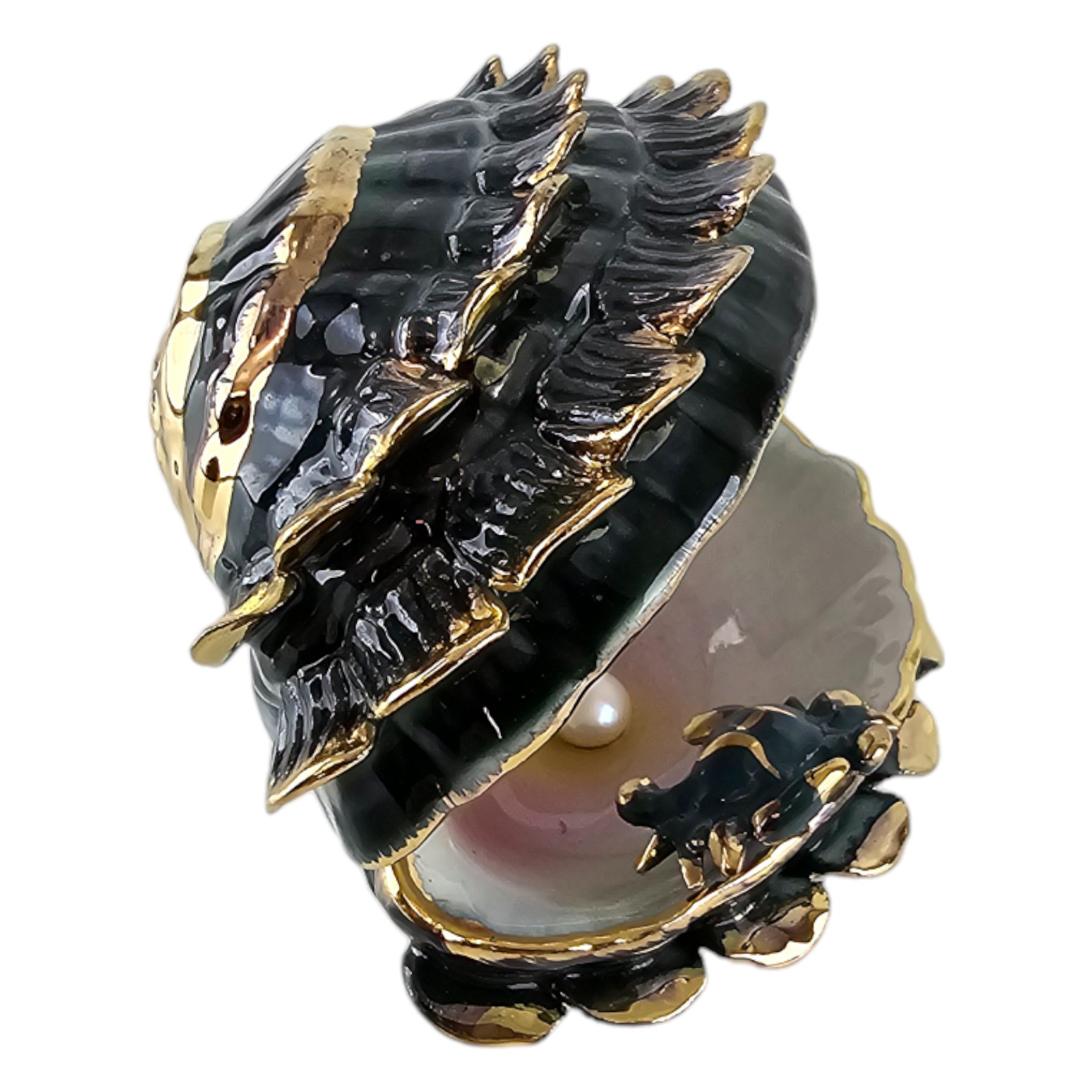 Жемчужина внутри ракушки придает этой статуэтке особый шарм. Она ловко отражает свет, создавая игру сверкания и придавая внутреннему миру статуэтки еще большую глубину и загадочность.