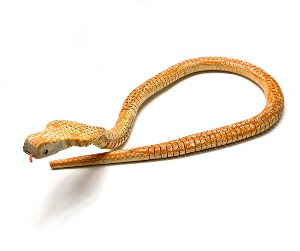 Змея деревянная - это классный прикол. Она очень похожа на настоящую змею. Змея изворотливая за счет маленьких звеньев, из которых она состоит.