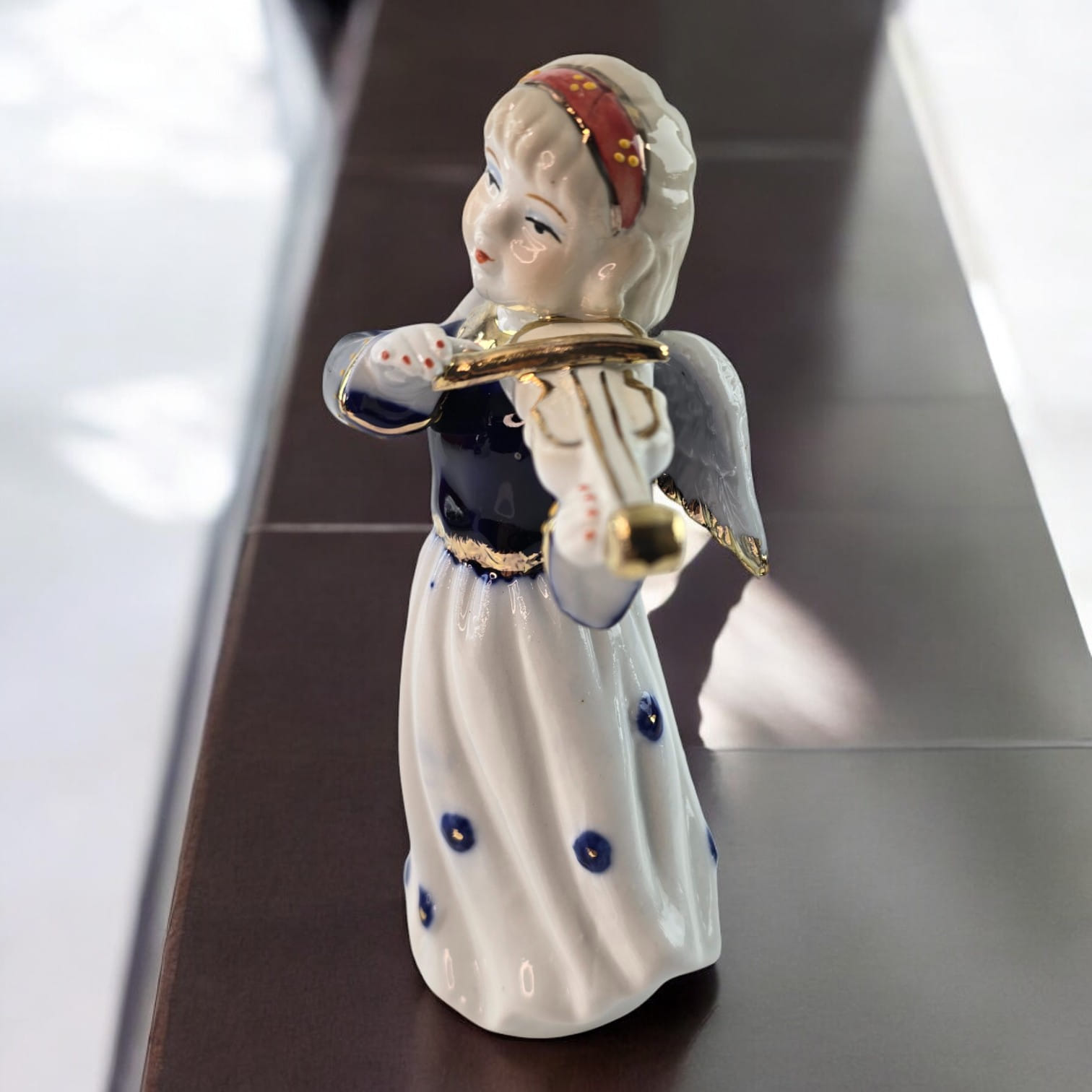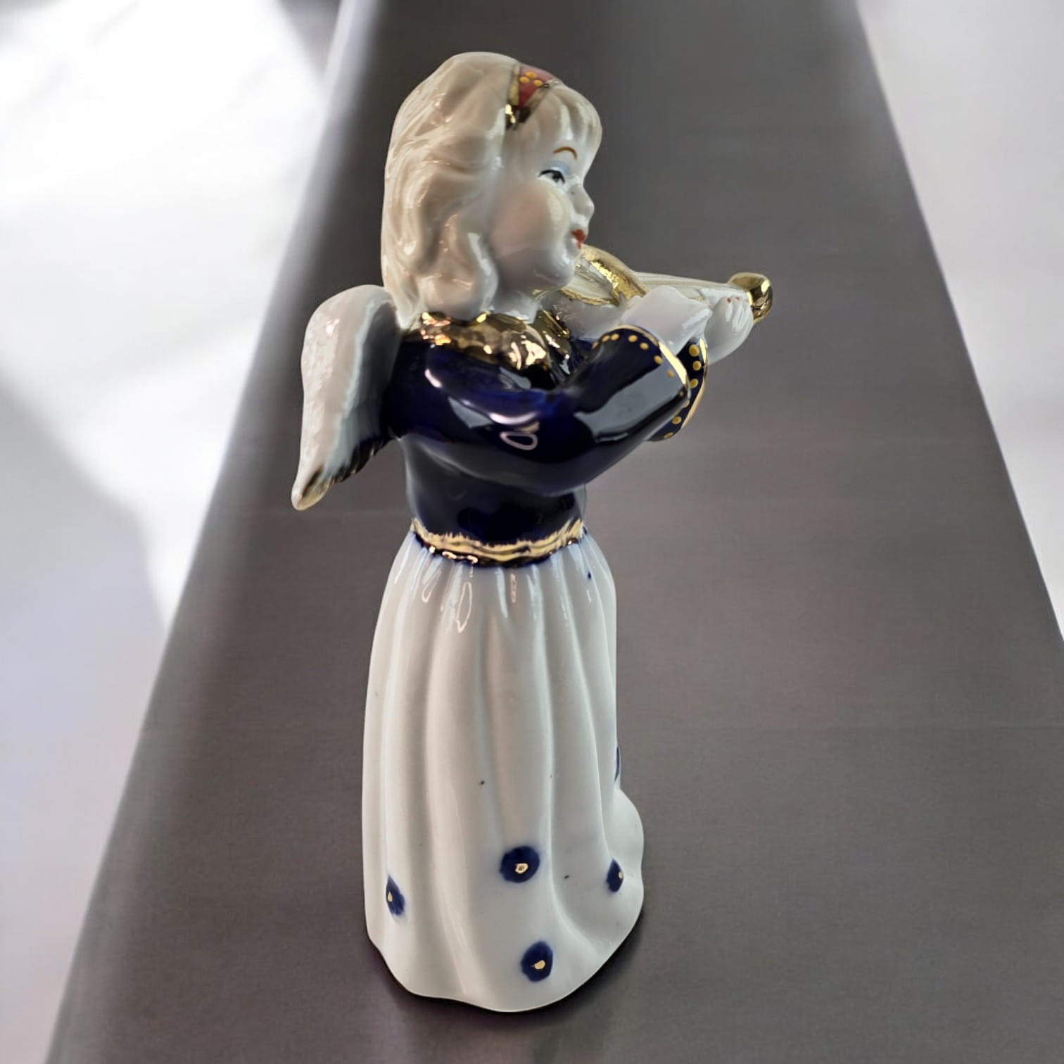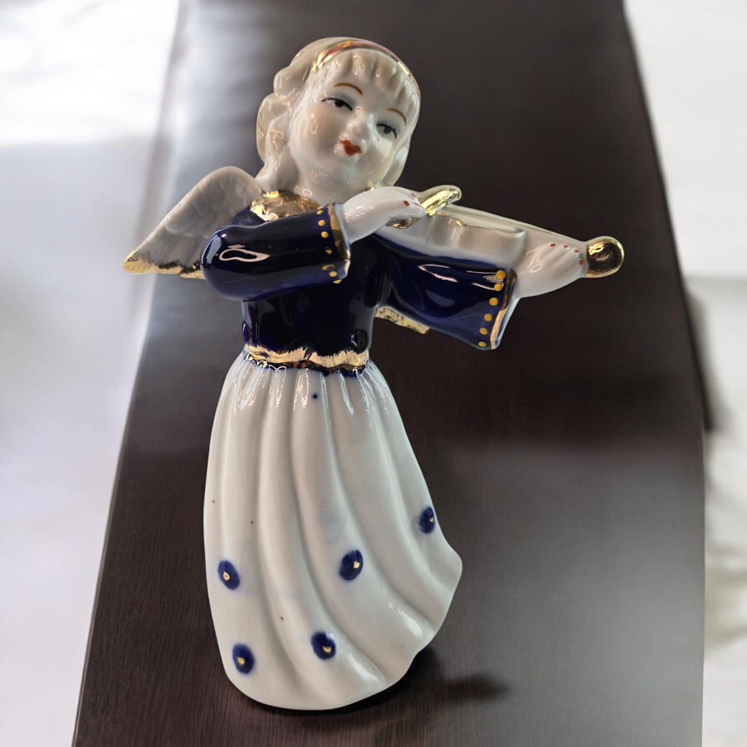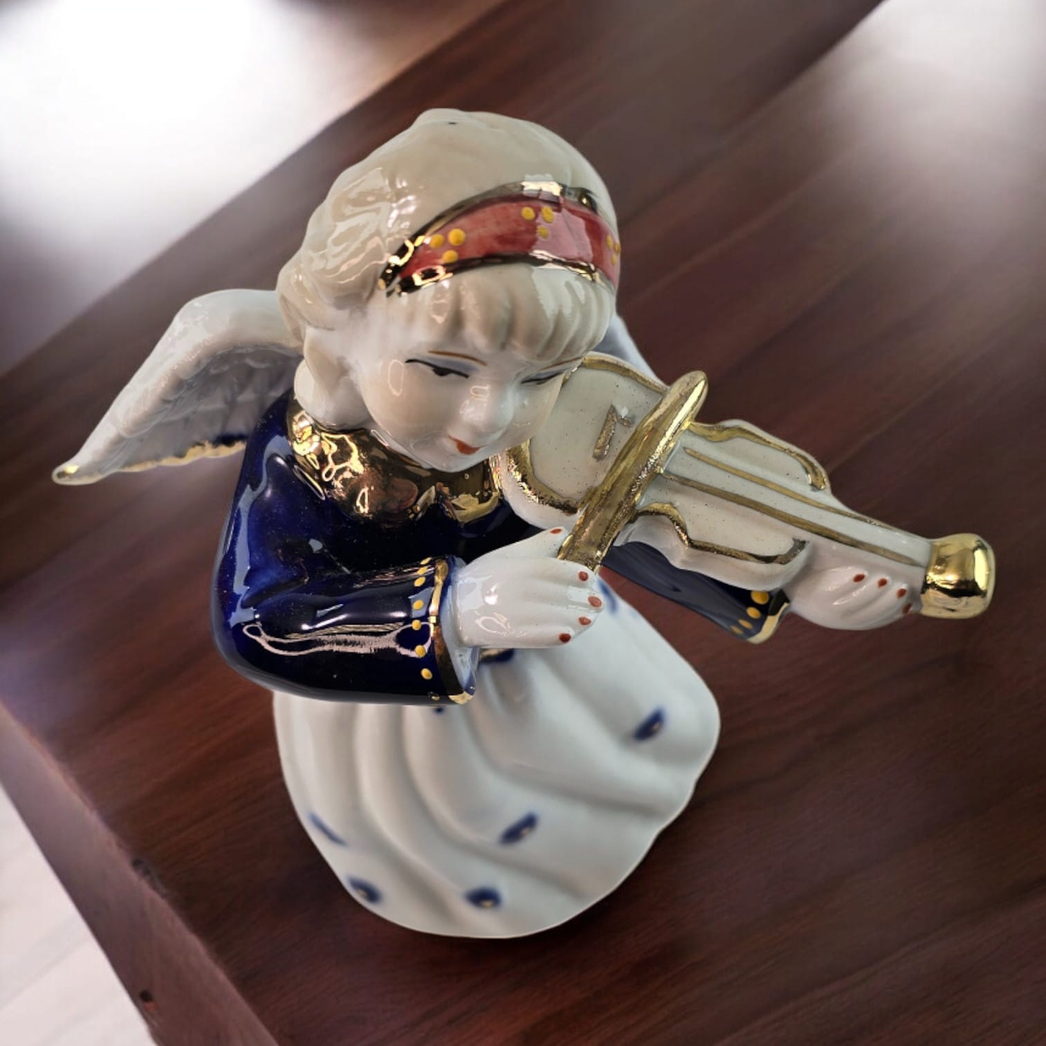 Эта очаровательная фигурка ангела со скрипкой создаст атмосферу гармонии и нежности в вашем доме. Ангел играет на скрипке, держит её с изяществом и грацией, а его нежное выражение лица добавляет ощущение покоя. Белоснежное платье украшено темно-синими декоративными элементами, а золотистые акценты на скрипке подчёркивают особый шарм этой статуэтки. Идеально подходит для декора вашего дома или в качестве подарка, символизирующего мир и радость.