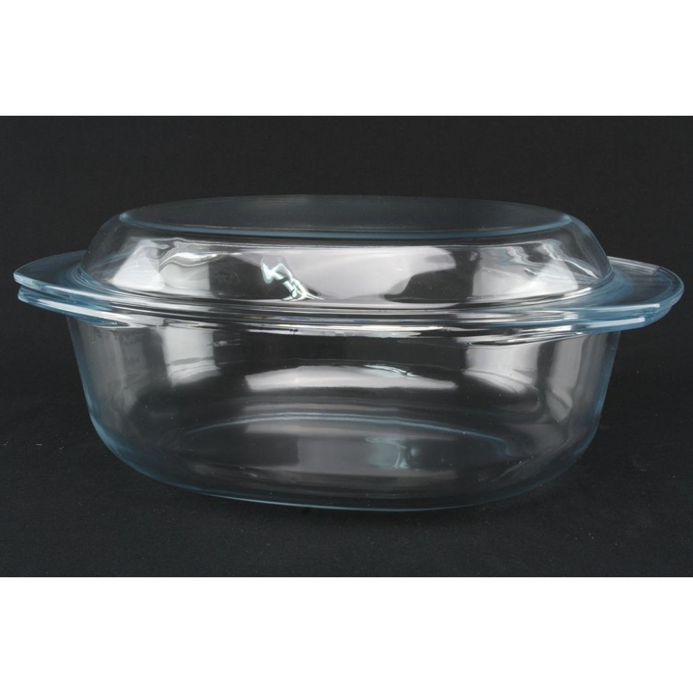 Кастрюля овальной формы из стекла - очень удобная универсальная посуда. В ней можно запекать в духовке, готовить в микроволновой печи, в ней удобно подавать блюдо прямо на стол. В прозрачной стеклянной посуде блюдо эффектно смотрится. Изготовлена из высококачественного жаропрочного стекла, экологична, не впитывает запахи. Крышку кастрюли можно использовать как тарелку. Не требует сложного ухода, легко отмывается, не впитывает жир, не теряет свой внешний вид. Объем - 3,5 л. Размер: 33 см х 23 см х 13,2 см.