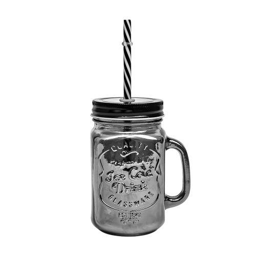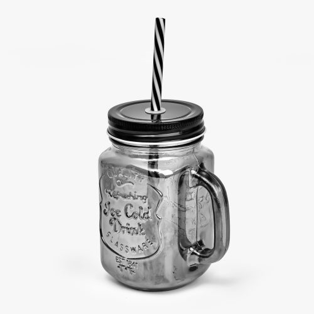 Чашка-банка с закручивающейся крышкой и трубочкой "Ice cold Drink" 450мл