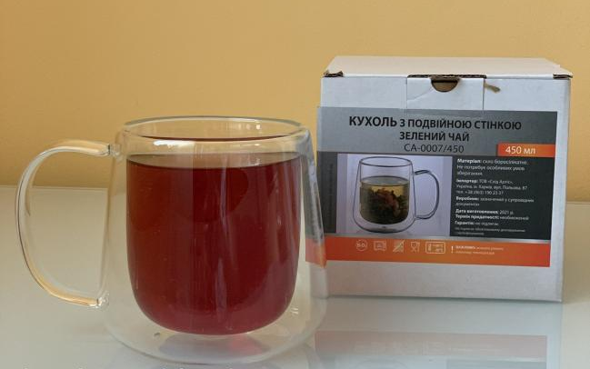 Чашка с двойными стенками, изготовлена из боросиликатного стекла